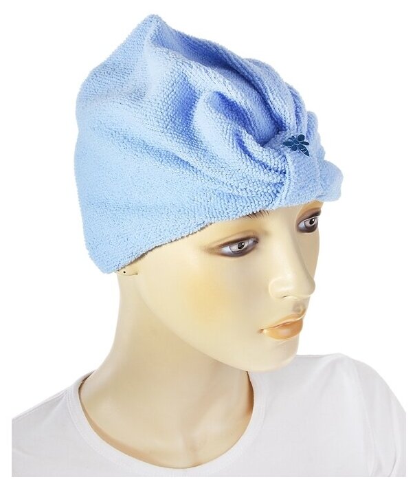 Чалма для сушки волос Доляна, микрофибра, цвет синий