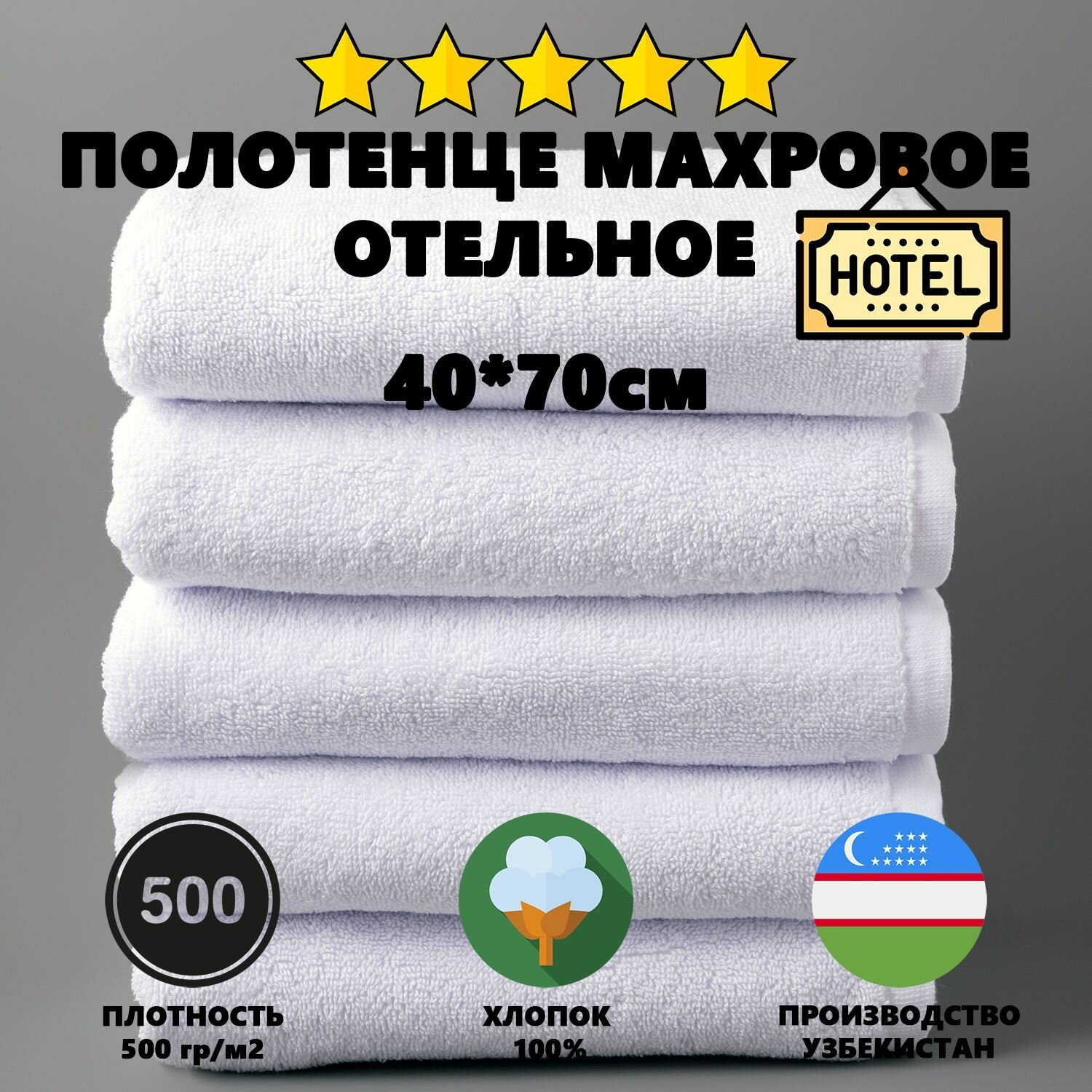 Полотенце махровое Отельное 500гр (40х70 см), двойная петля, 100% хлопок, 1шт. / Полотенце для отелей/ Полотенце для гостиницы
