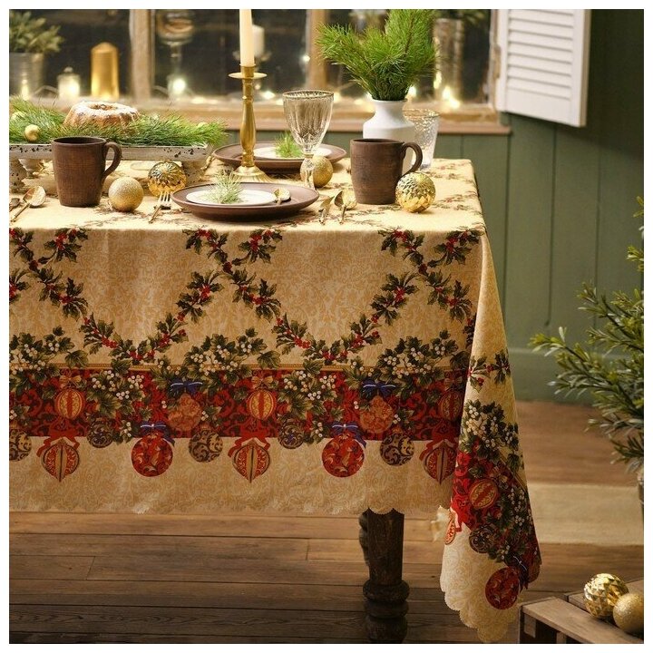 Скатерть новогодняя "Праздничные украшения" 145*300 см, 100% п/э