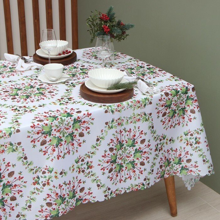 Новый год. Скатерть новогодняя Доляна "Рождественский букет" 145*180 см, 100% п/э