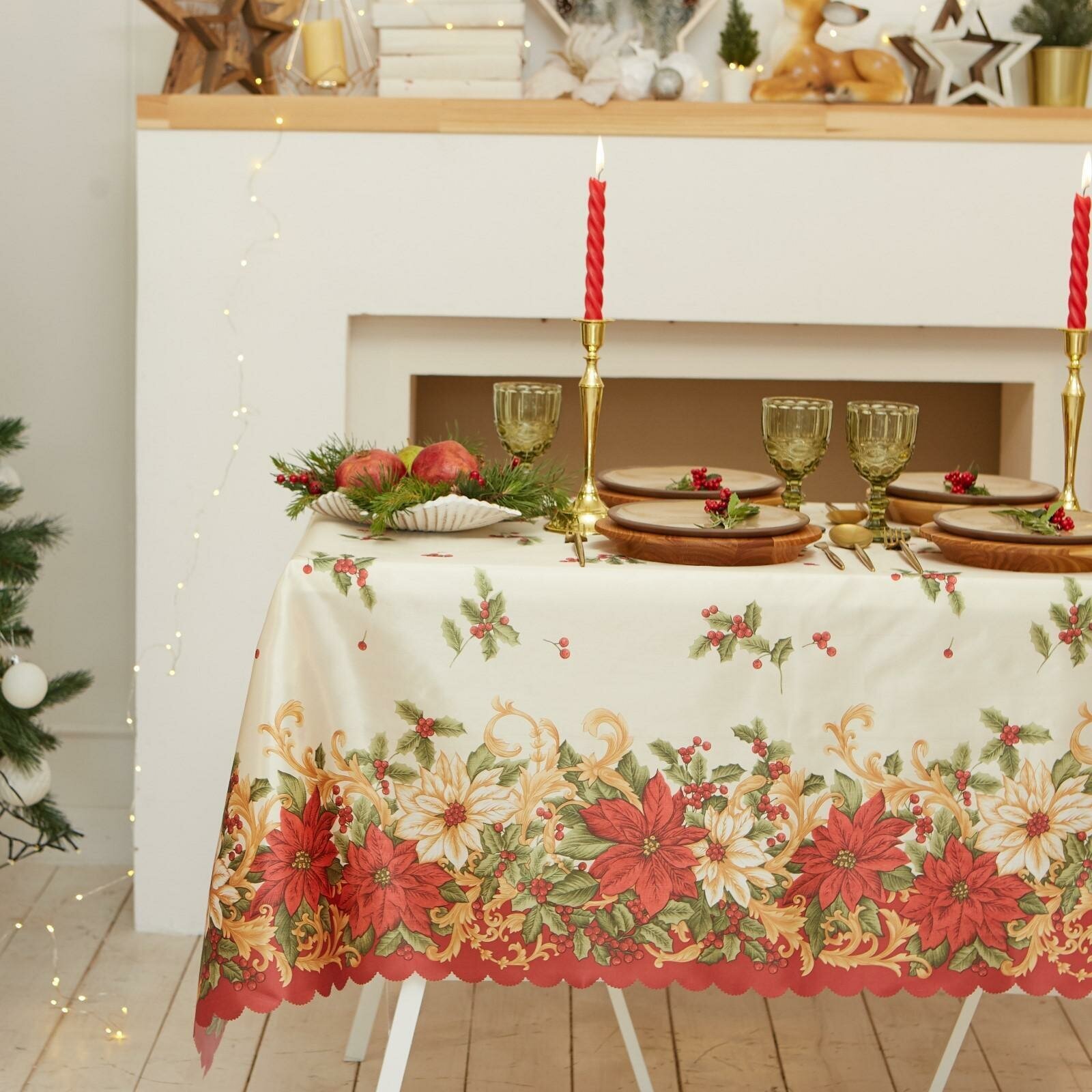 Скатерть новогодняя Доляна "Рождественские цветы" 145*220 см, 100% п/э