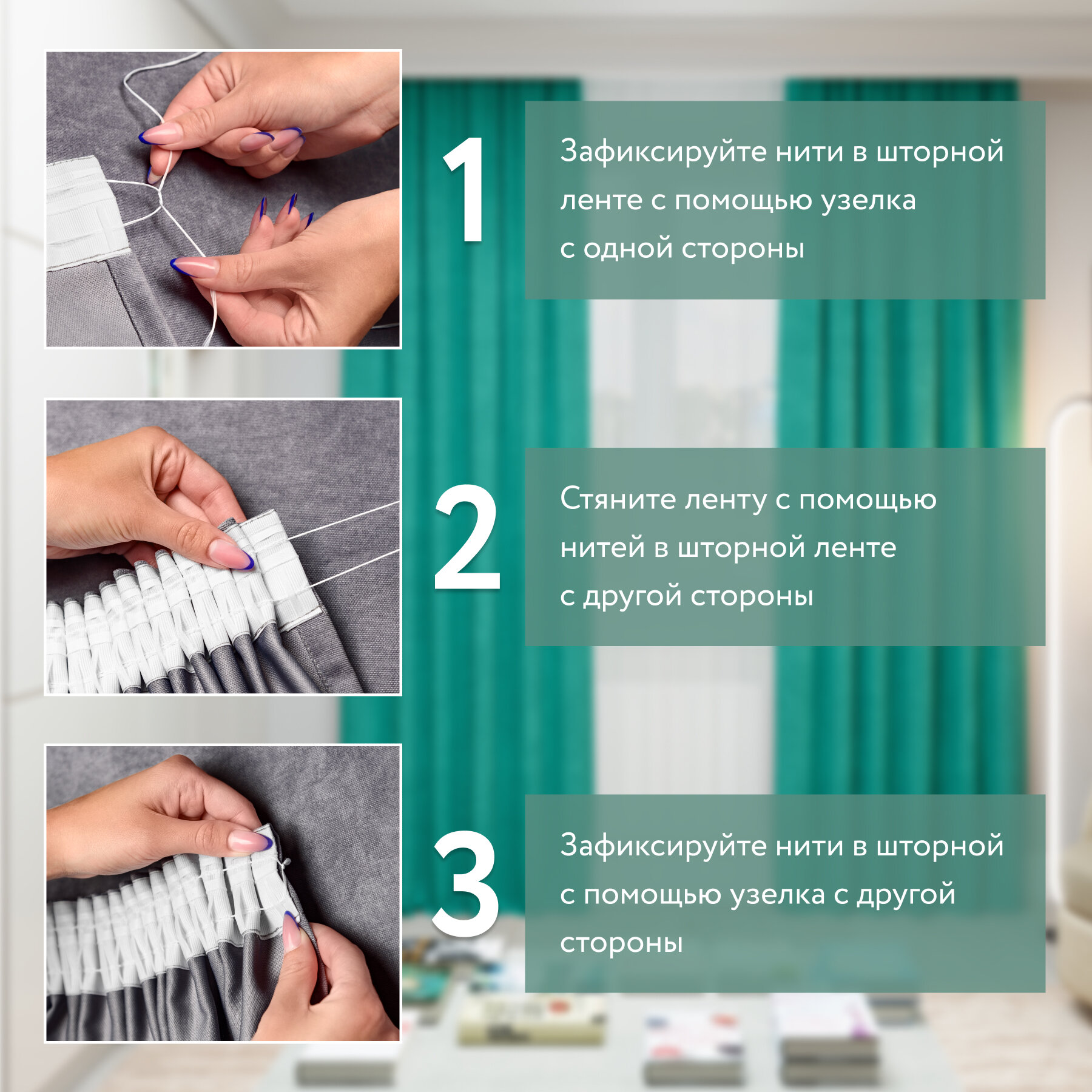 Шторы для комнаты. Портьера Канвас на шторной ленте 200 на 260 см бирюзовый. Шторы для гостиной, шторы для кухни. Шторы для гостиной и спальни