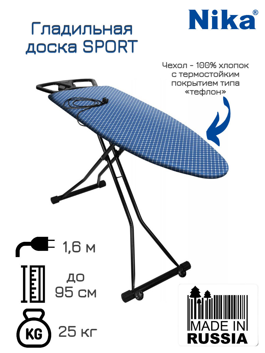 Гладильная доска "Nika Sport" NS/6, 122 см х 42 см, с встроенной розеткой, металл интересное: