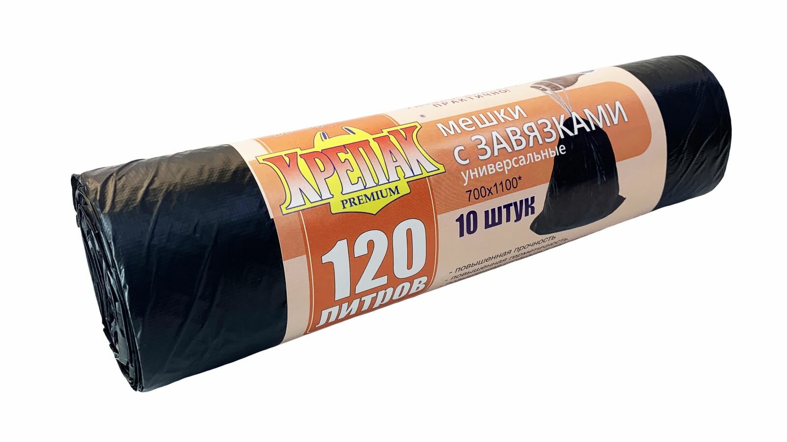 Мешки для мусора с завязками в рулоне Крепак 120 л, 10 шт