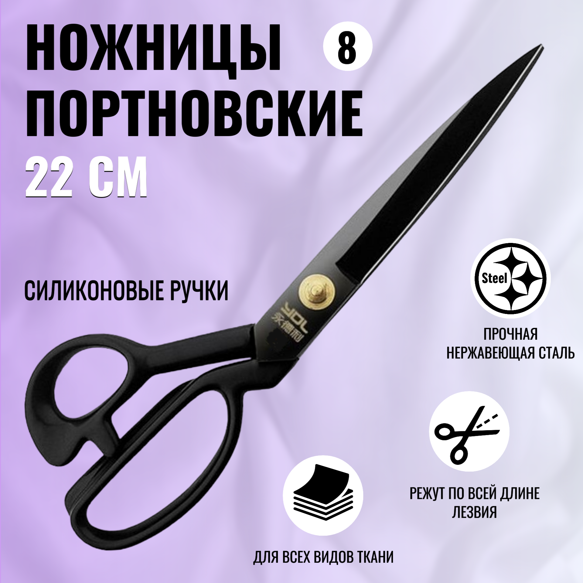 Ножницы портновские профессиональные, ножницы раскройные, YDL008, размер 22 см интересное:
