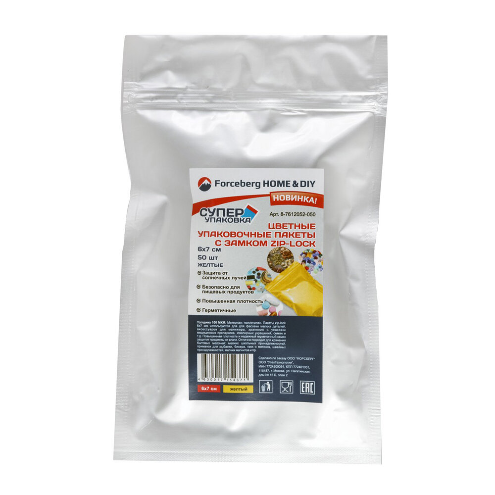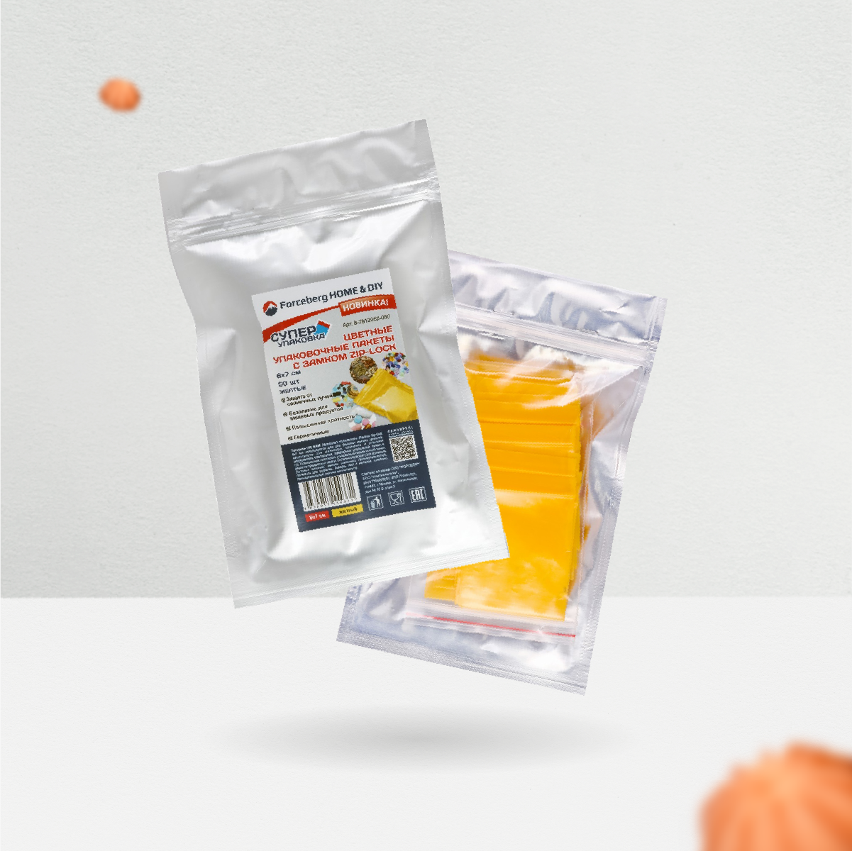СохранитьУпаковочные цветные зип пакеты Forceberg HOME&DIY с замком zip-lock 6х7 см, желтый, 50 шт, для хранения продуктов, специй, бытовых мелочей интересное: