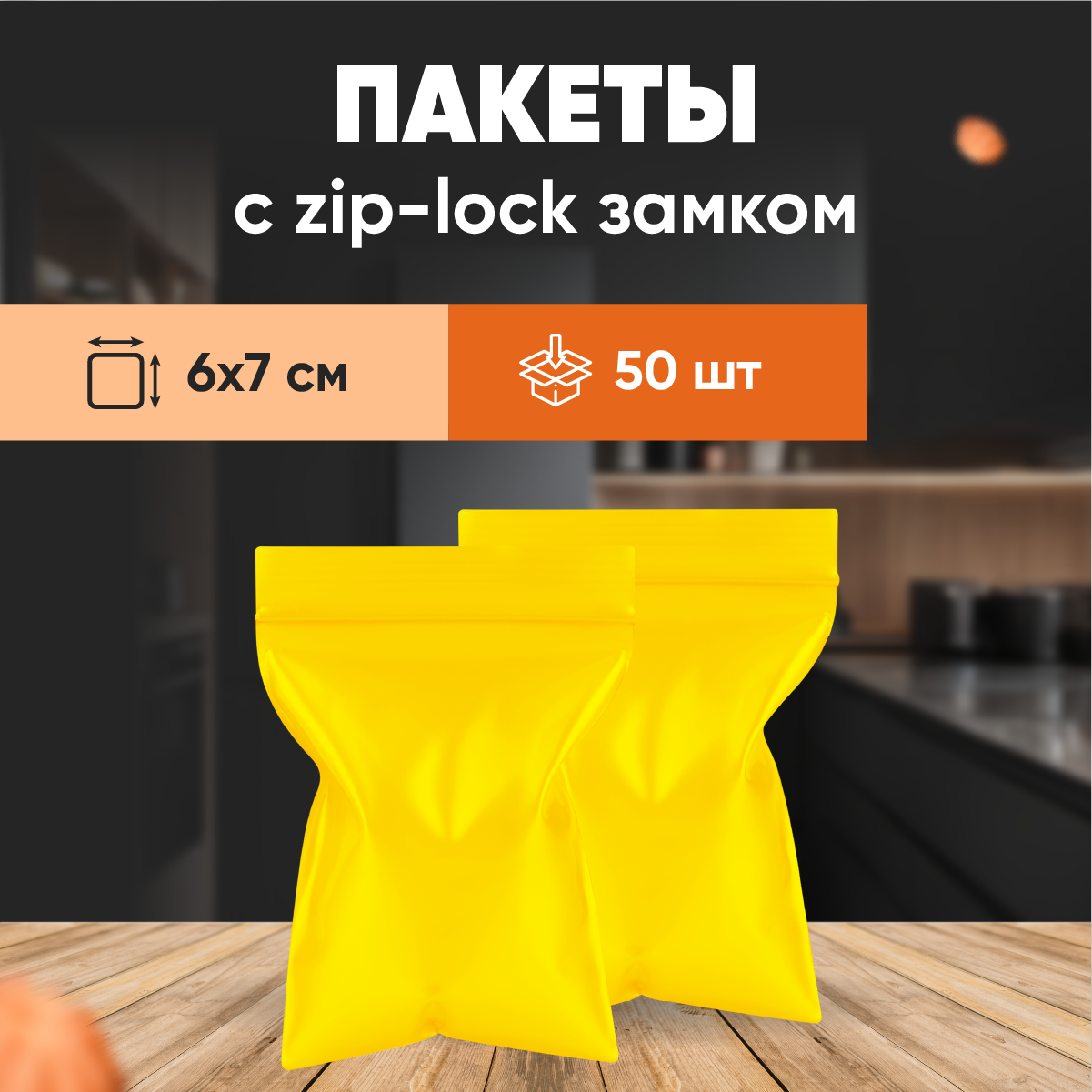 Купить Упаковочные цветные зип пакеты Forceberg HOME&DIY с замком zip-lock 6х7 см, желтый, 50 шт, для хранения продуктов, специй, бытовых мелочей