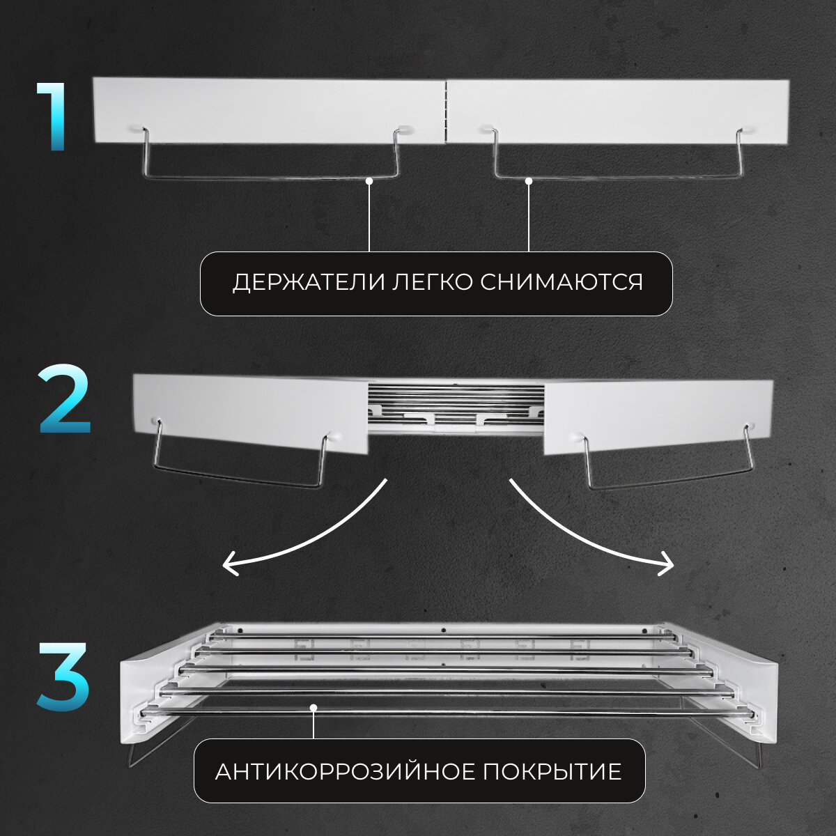 Сушилка для белья настенная, 100х3х10см, металл, 5 прутьев, до 25кг