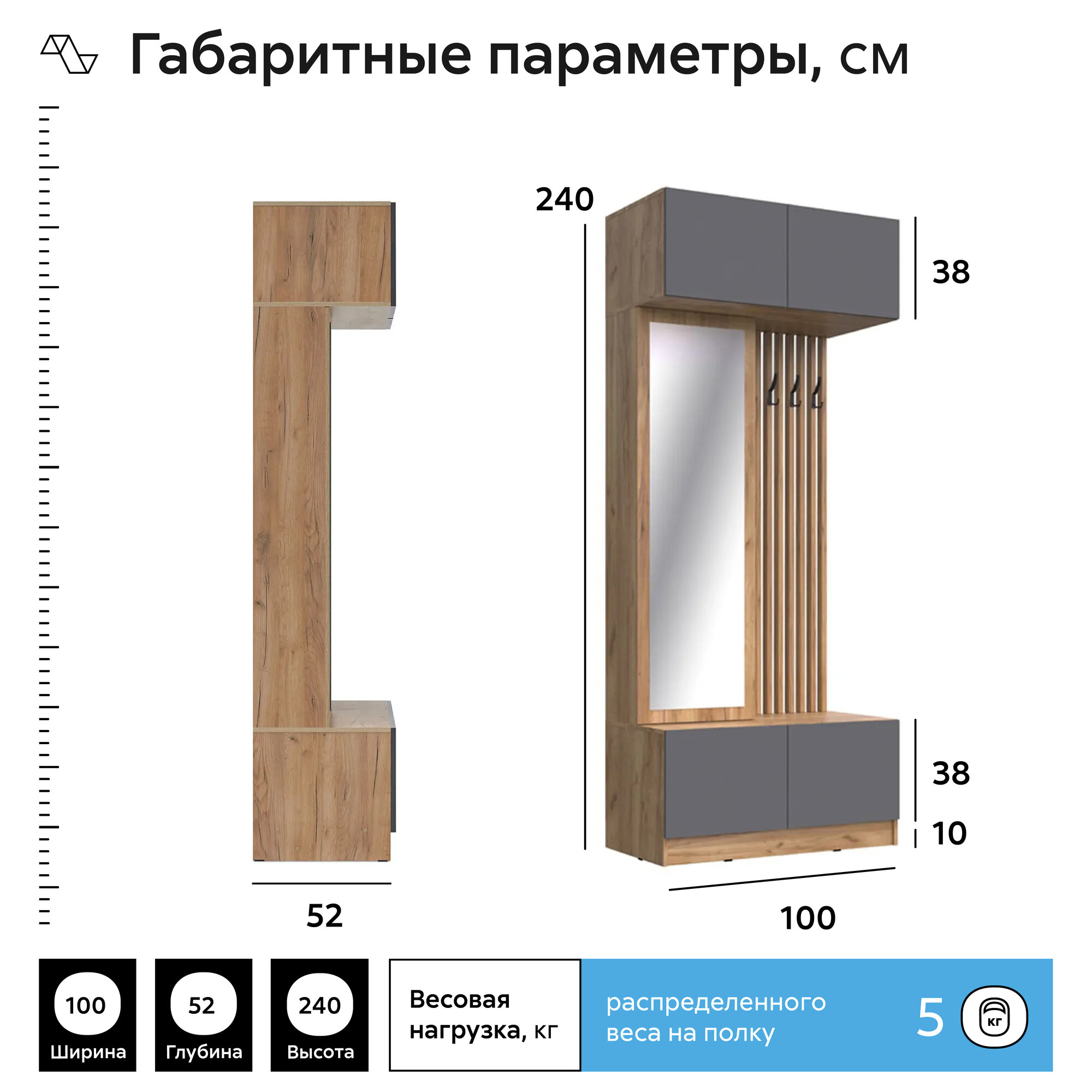 СохранитьПрихожая с зеркалом Нонтон Роджина дуб крафт / графит, 100х52х240 см интересное: