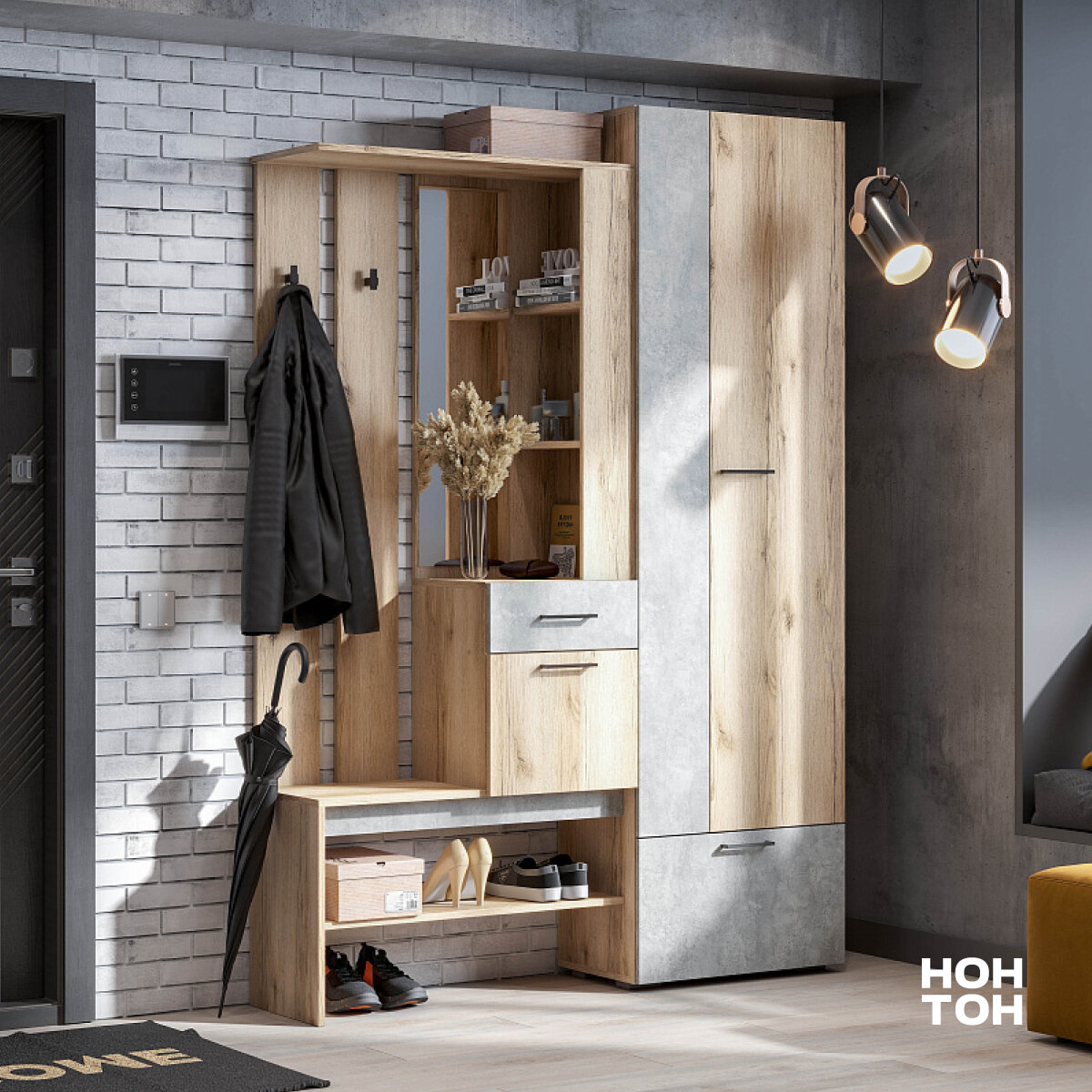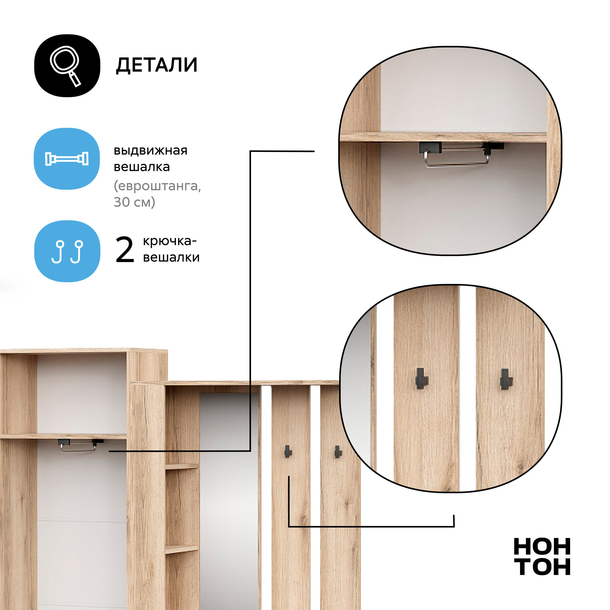 Прихожая с зеркалом Нонтон Фаворит дуб делано / цемент светлый, 142х35.2х205.6 см интересное: