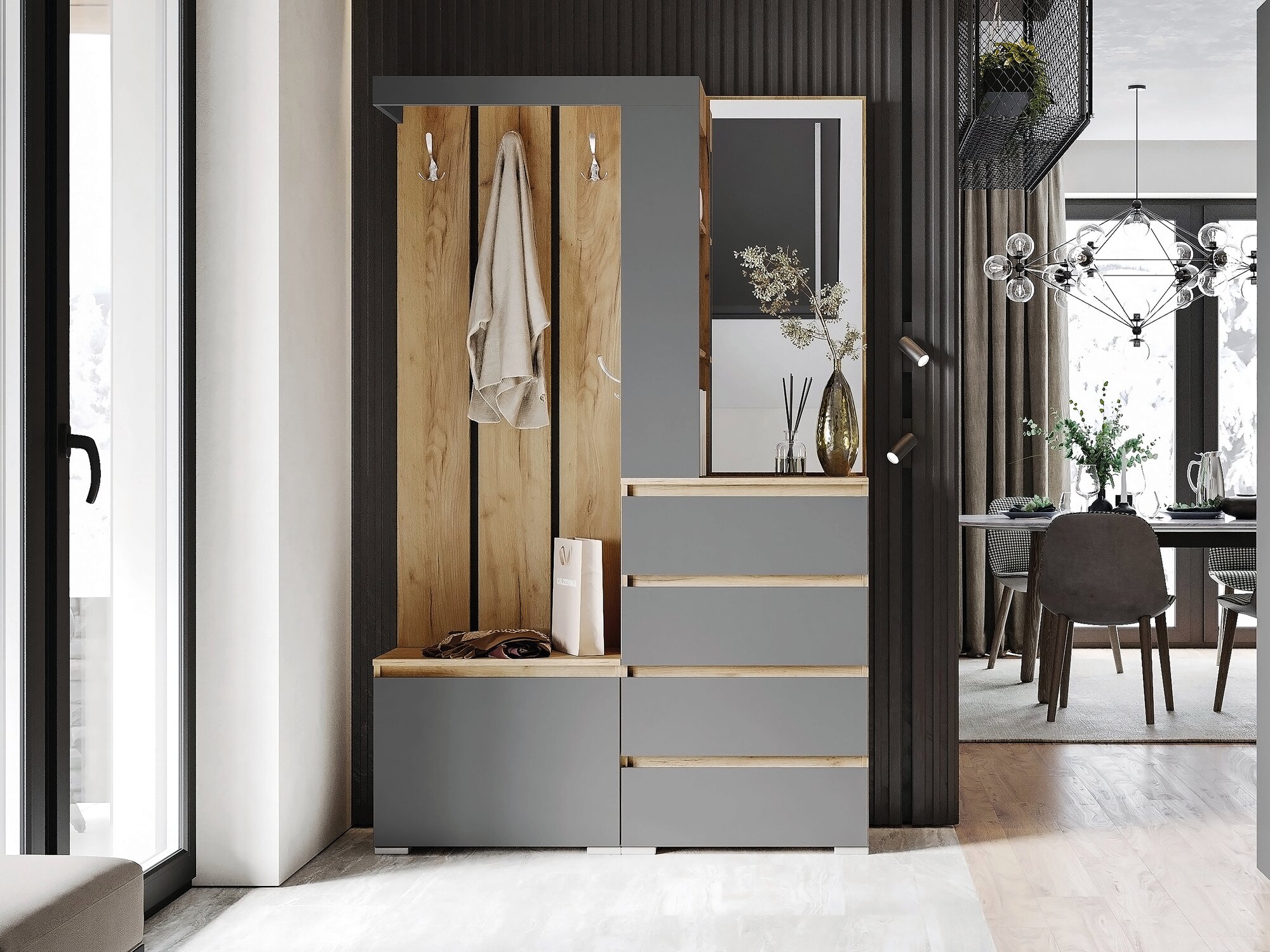 Прихожая Денвер, 800х360х1925, Графит/Дуб гранж