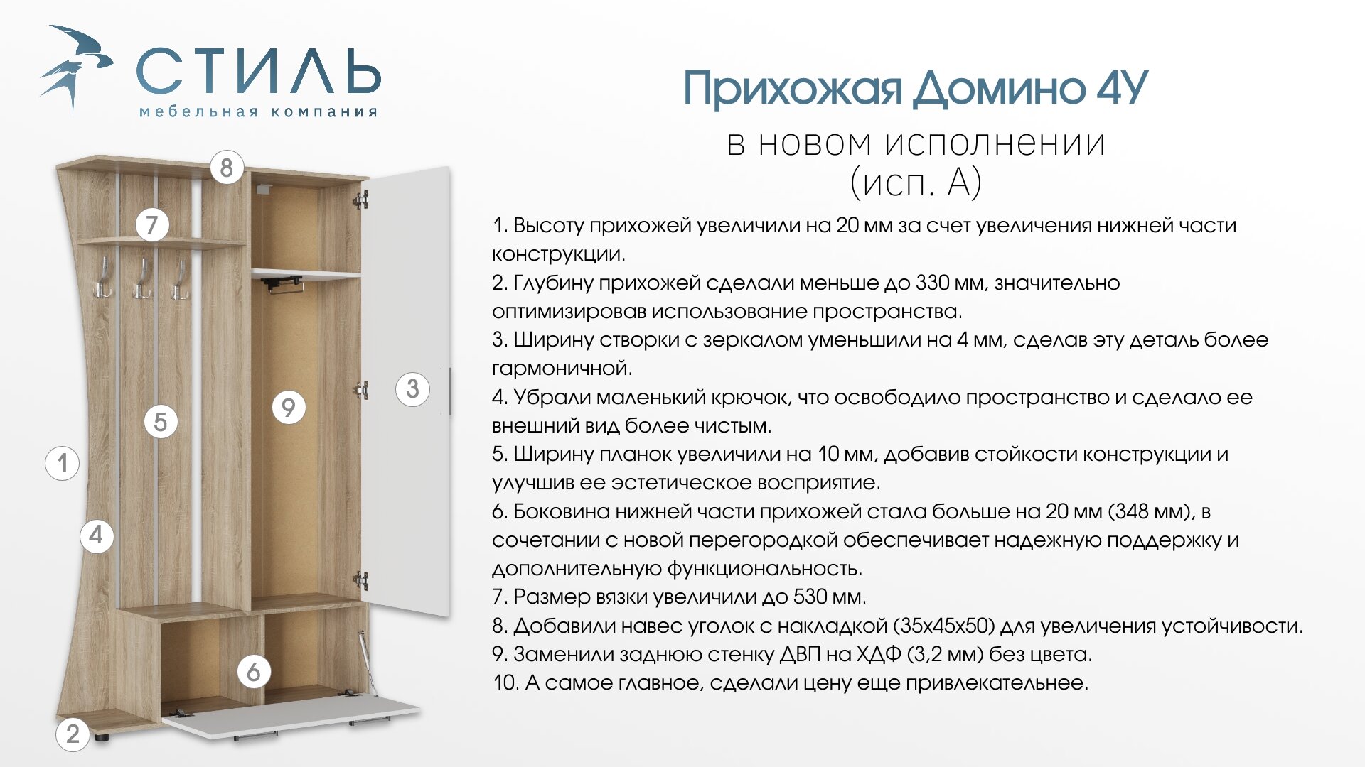 Прихожая "Домино-4У" (исп. А) (Улучшенная фурнитура) - Дуб сонома светлый / белый гладкий