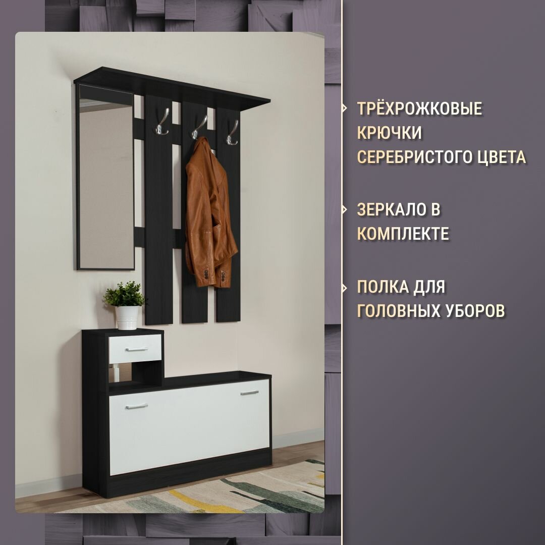 Купить Прихожая мебель комплект Интер 100х27х191 с полкой и вешалкой антрацит/белый