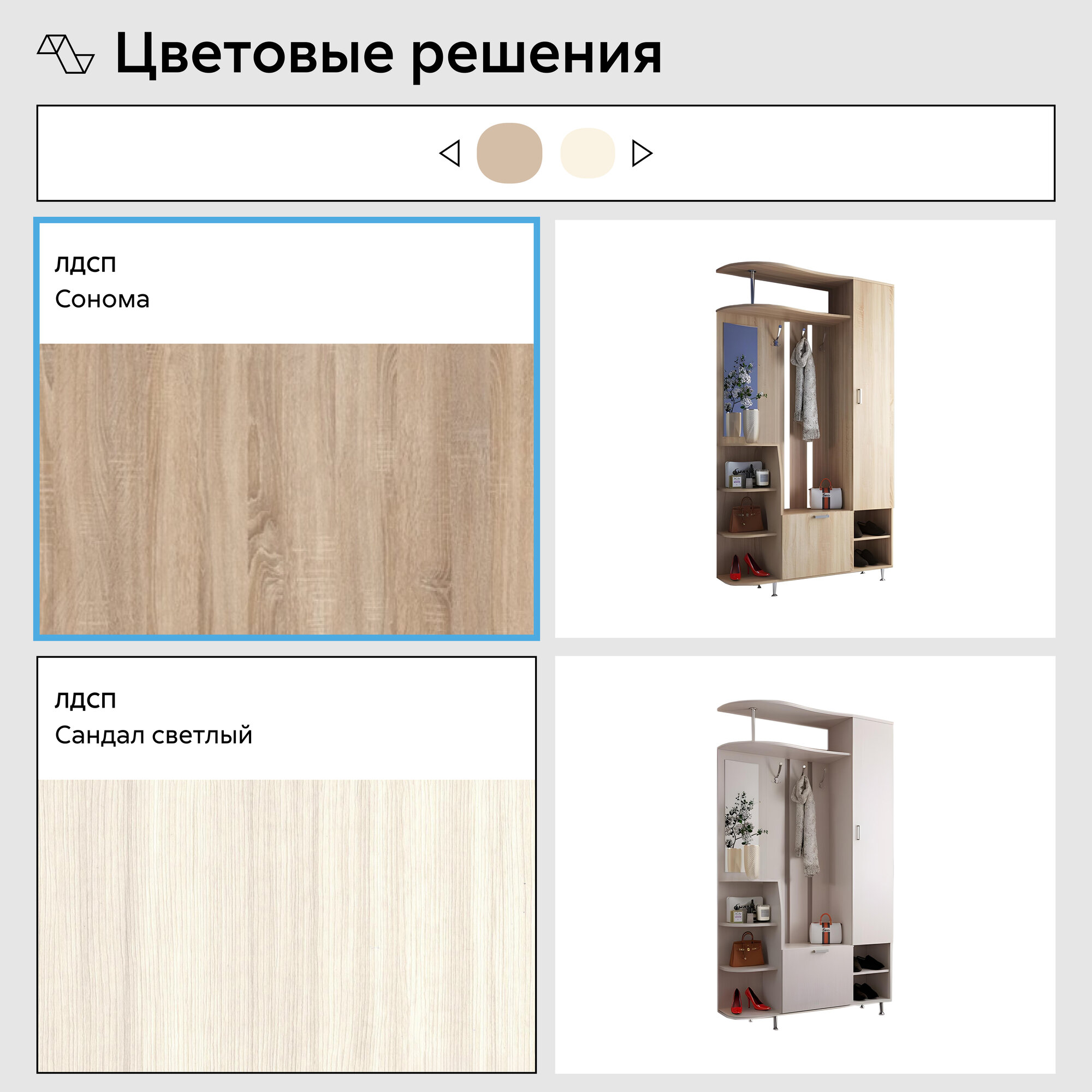 | Особенности | для маленькой прихожей, для узкой прихожей, крепление к стене, модульная конструкция, со штангой для вешалок, угловая конструкция, шкаф с зеркалом |