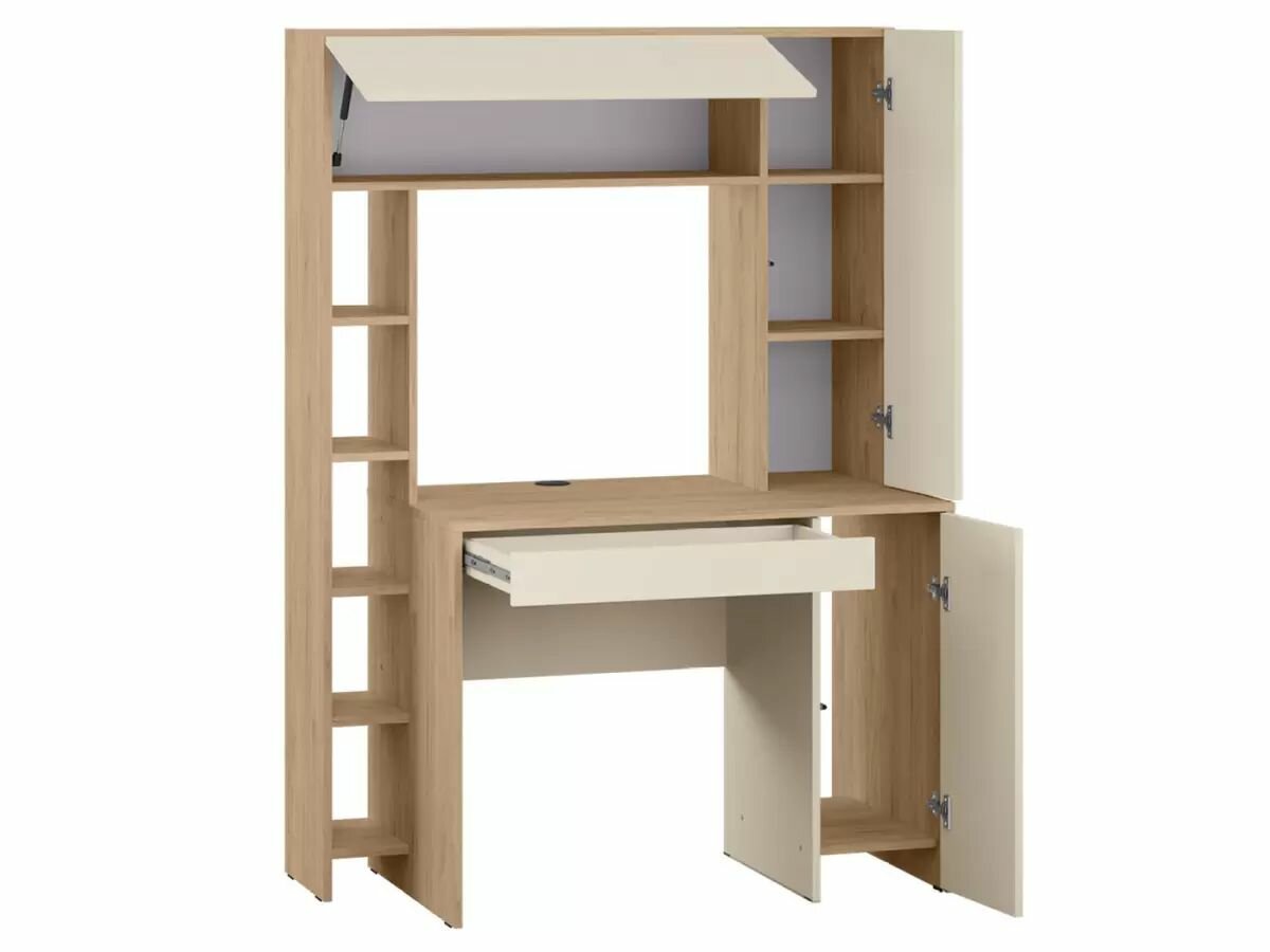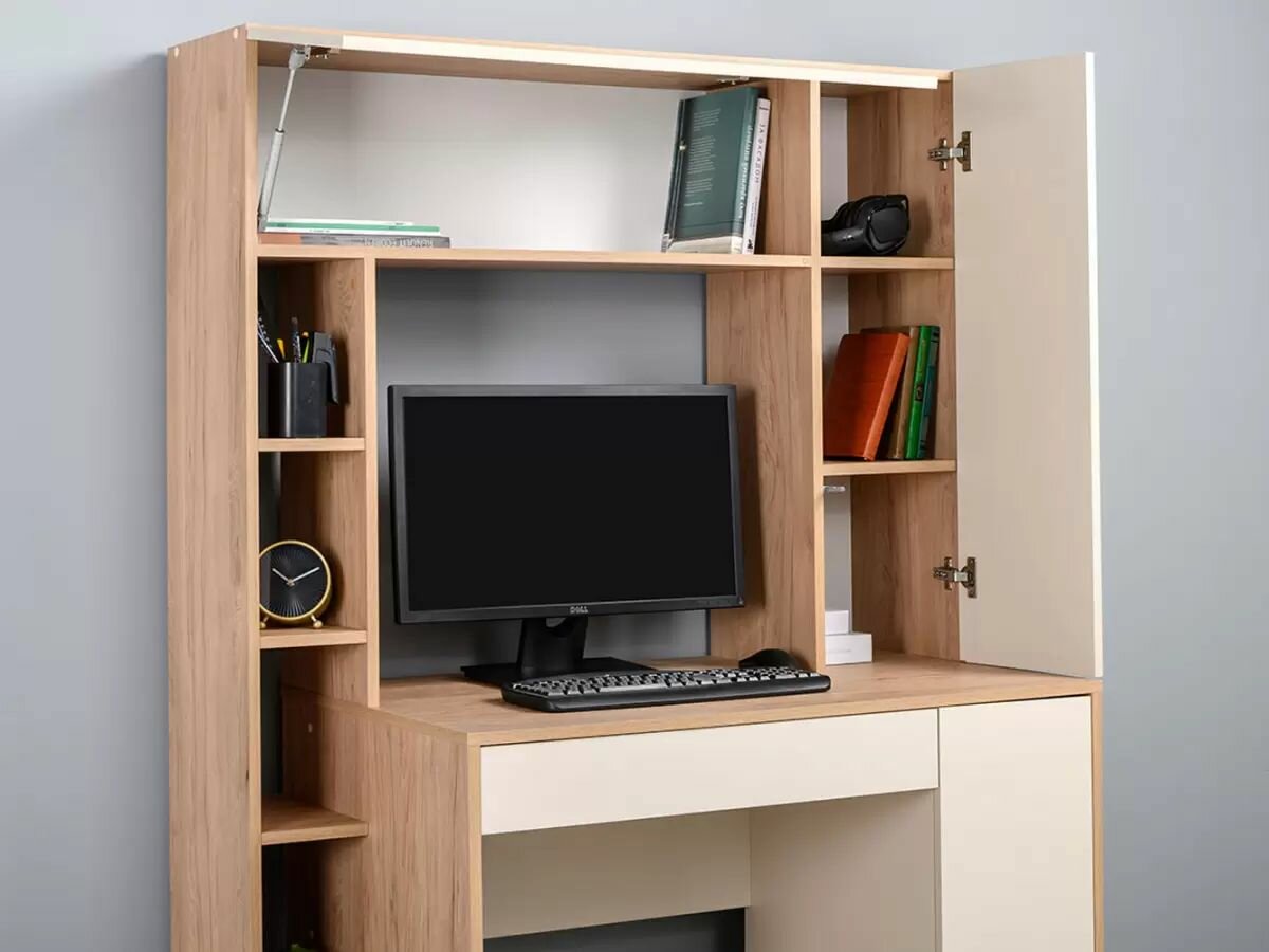 Компьютерный, письменный стол Каф с надстройкой, с тумбой, 116.7х60.2х165.4 см, Дуб золотой / Белая аляска