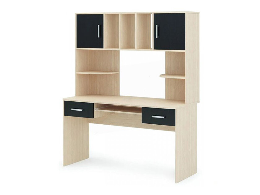 Стол компьютерный Стендмебель 2 с полкой надстройкой и выдвижными ящиками, ясень шимо светлый/ясень шимо темный