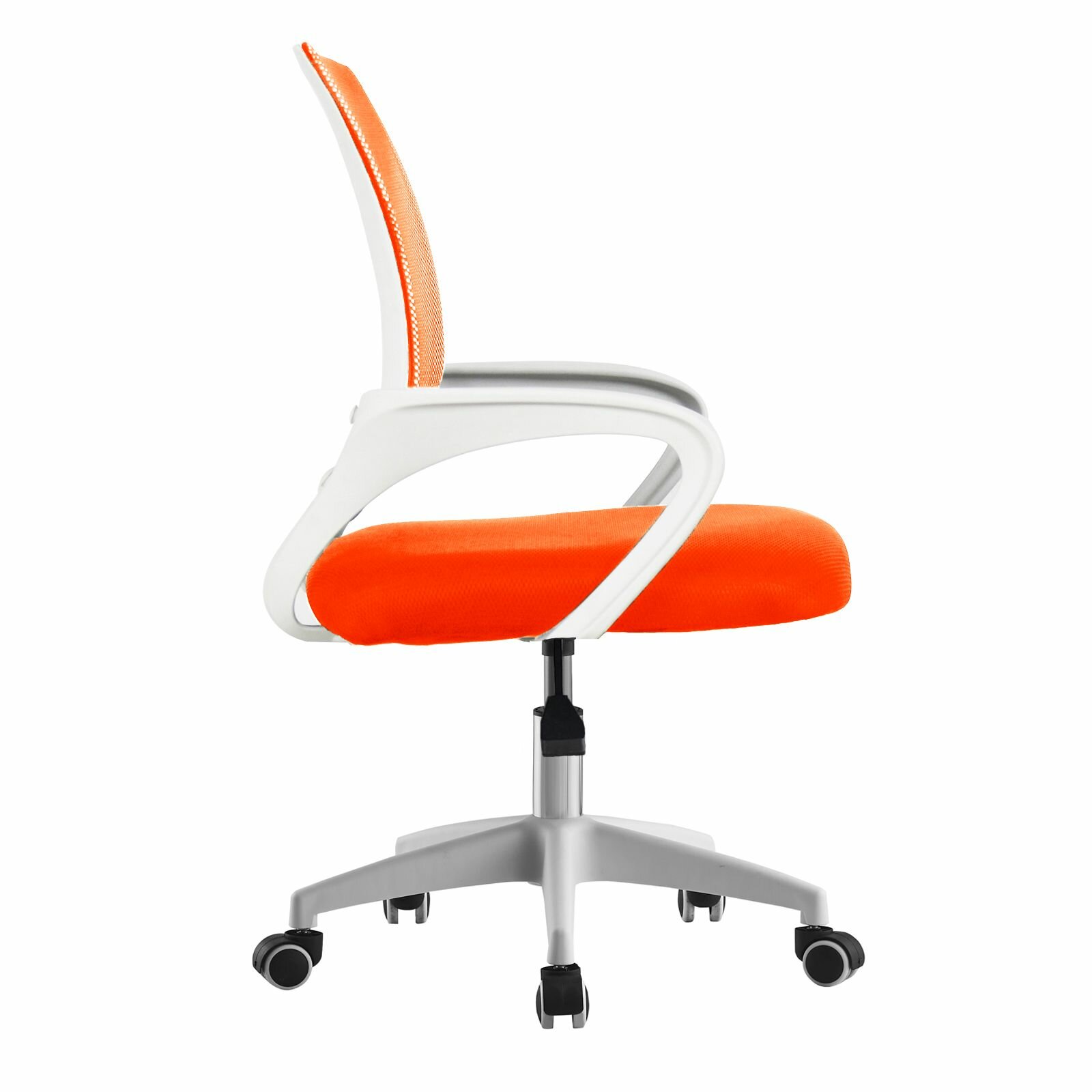 Купить Офисное кресло мягкое со спинкой на колесиках СтулБержи, сетка, ткань, спинка и сиденье - оранжевый, ручки и ножки - белый