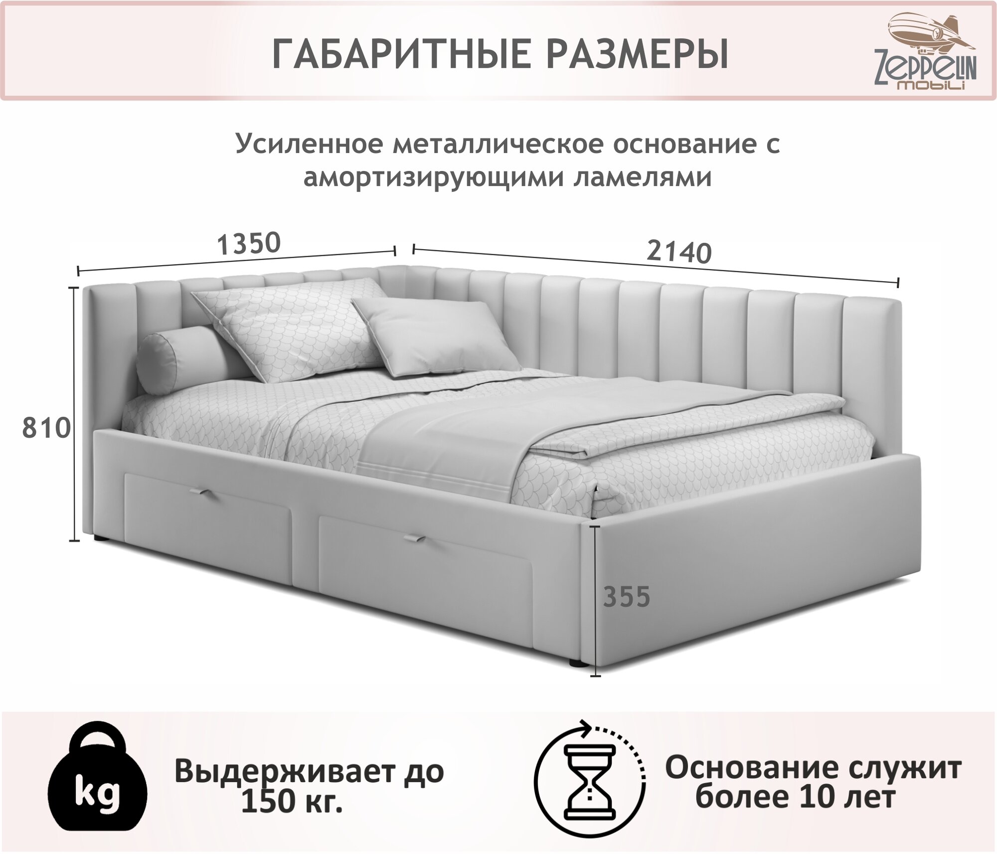 Кровать угловая Milena Zeppelin 120х200 маренго с ящиками, из велюра, с ортопедическими ламелями