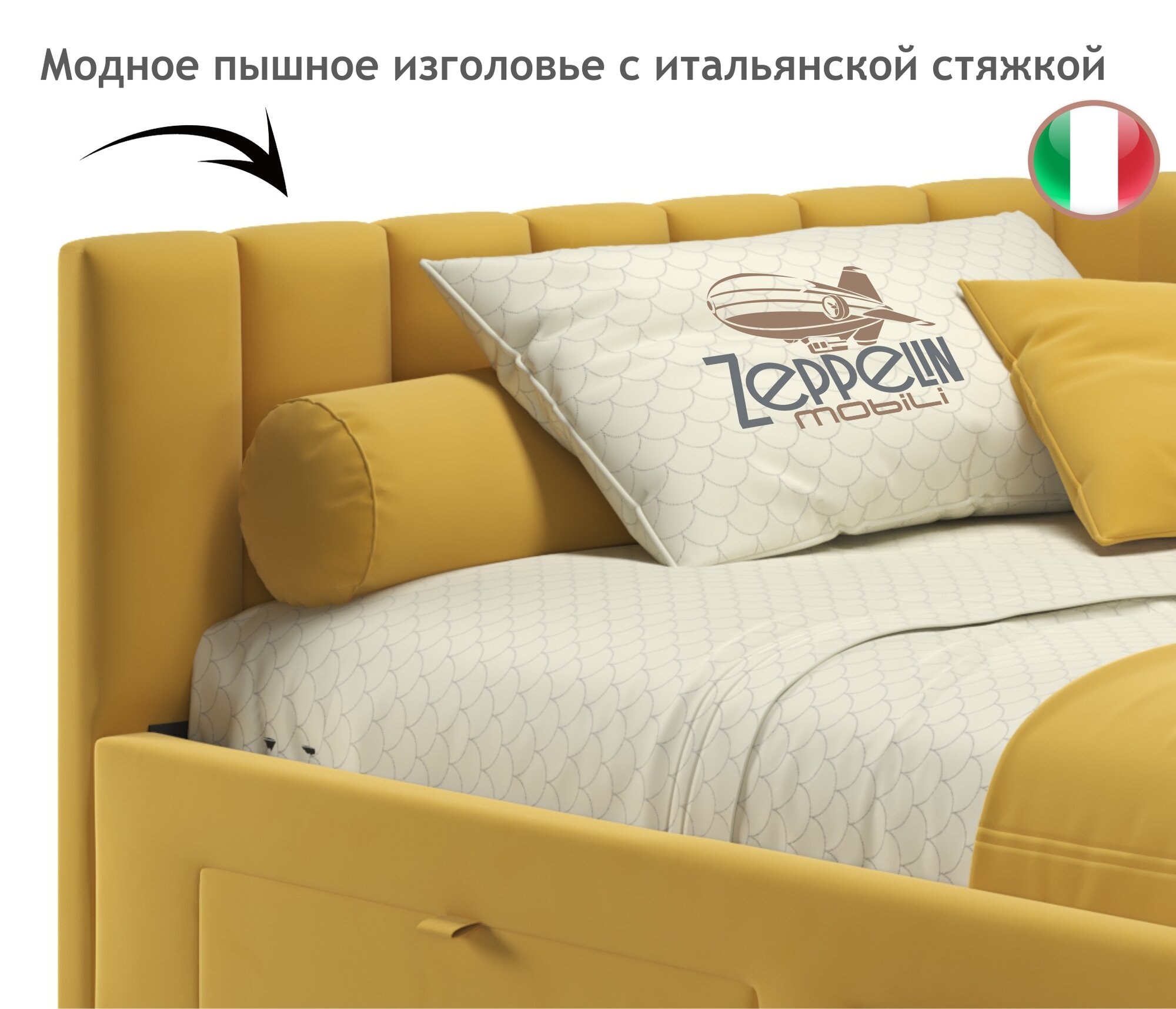 Купить Кровать Milena Zeppelin 120х200 желтая с ящиками, из велюра, с ортопедическими ламелями