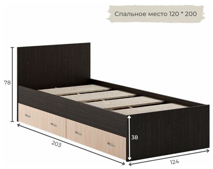 Кровать Виктория 120х200 см. венге/дуб с ящиками интересное: