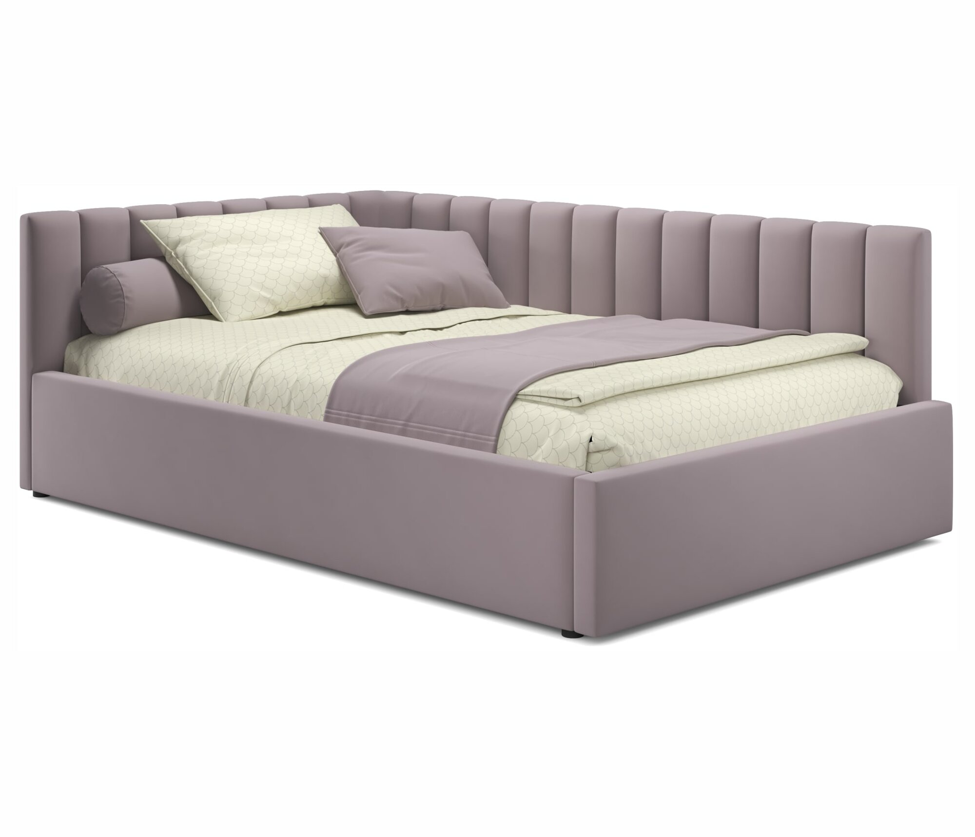 Кровать-тахта Milena 120х200 лиловая подъемная, мягкая спинка из велюра, с ортопедическими ламелями, с ящиком для хранения