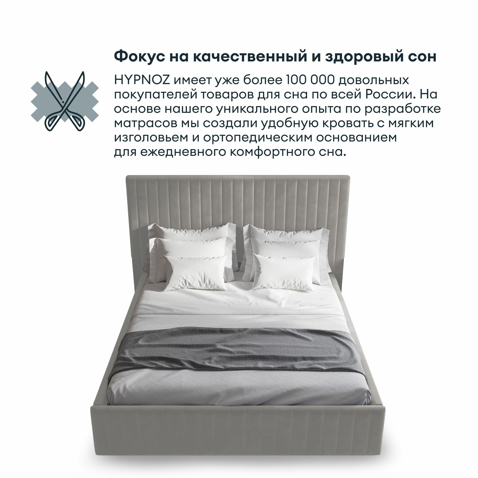 Кровать двуспальная HYPNOZ Salamanca 180х200, с подъёмным механизмом, Светло-серая