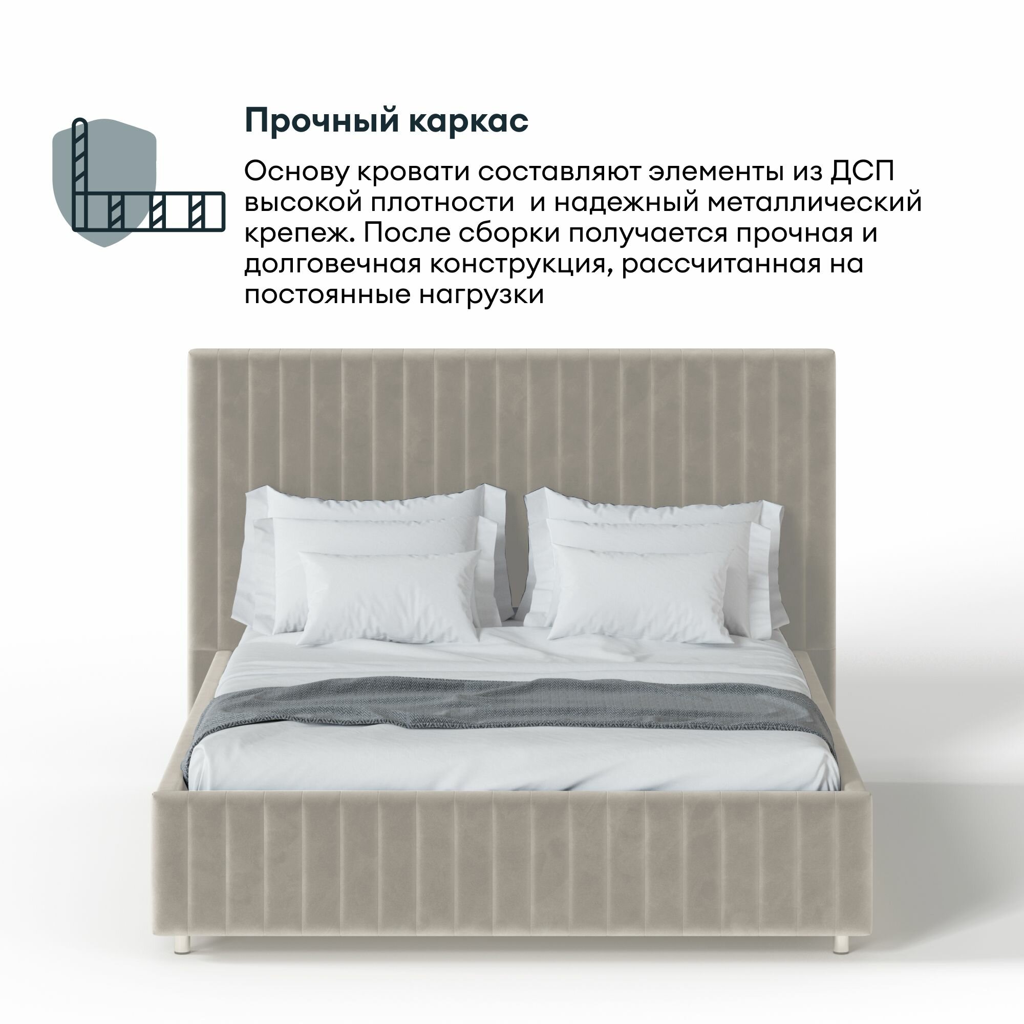Кровать с матрасом Роза Серая Велюр 160х200
