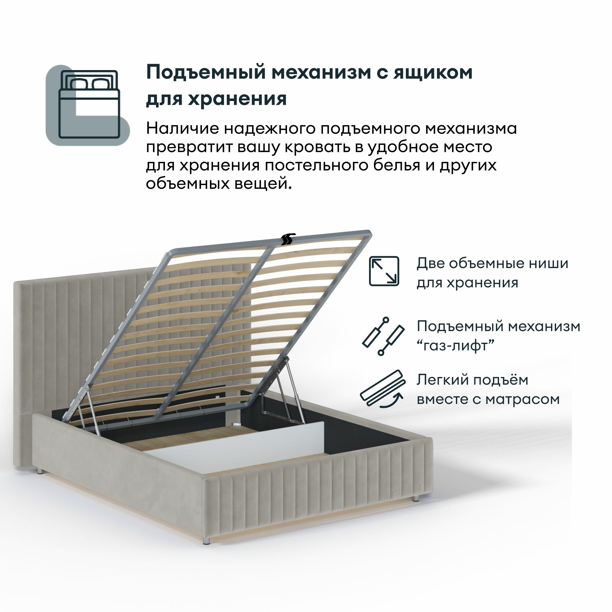 СохранитьКровать двуспальная HYPNOZ Salamanca 180х200, с подъёмным механизмом, Серо-бежевая интересное: