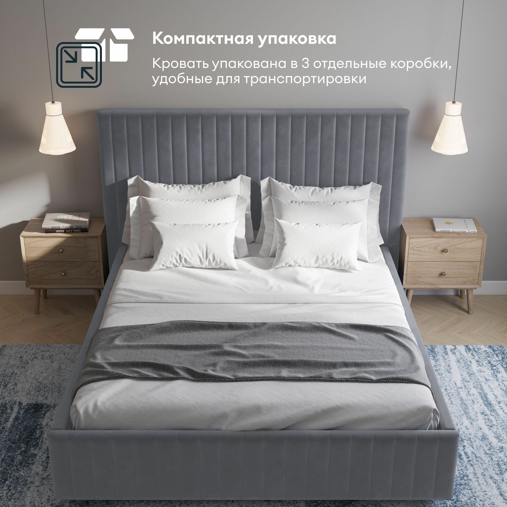 Кровать двуспальная HYPNOZ Salamanca 180х200, с подъёмным механизмом, Светло-серая