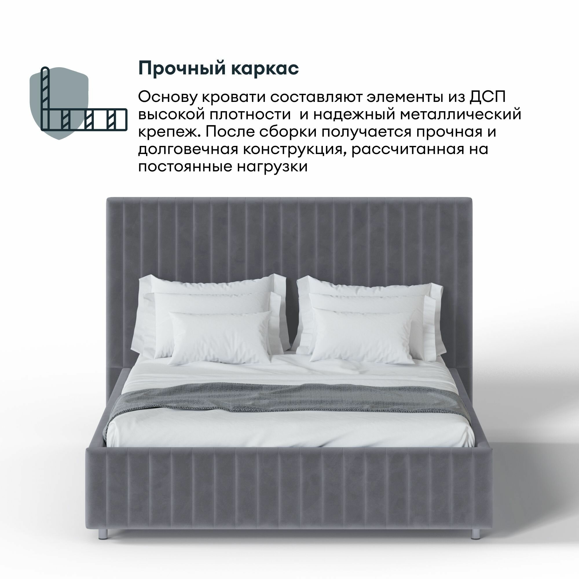 Кровать с матрасом Роза Серая Велюр 160х200