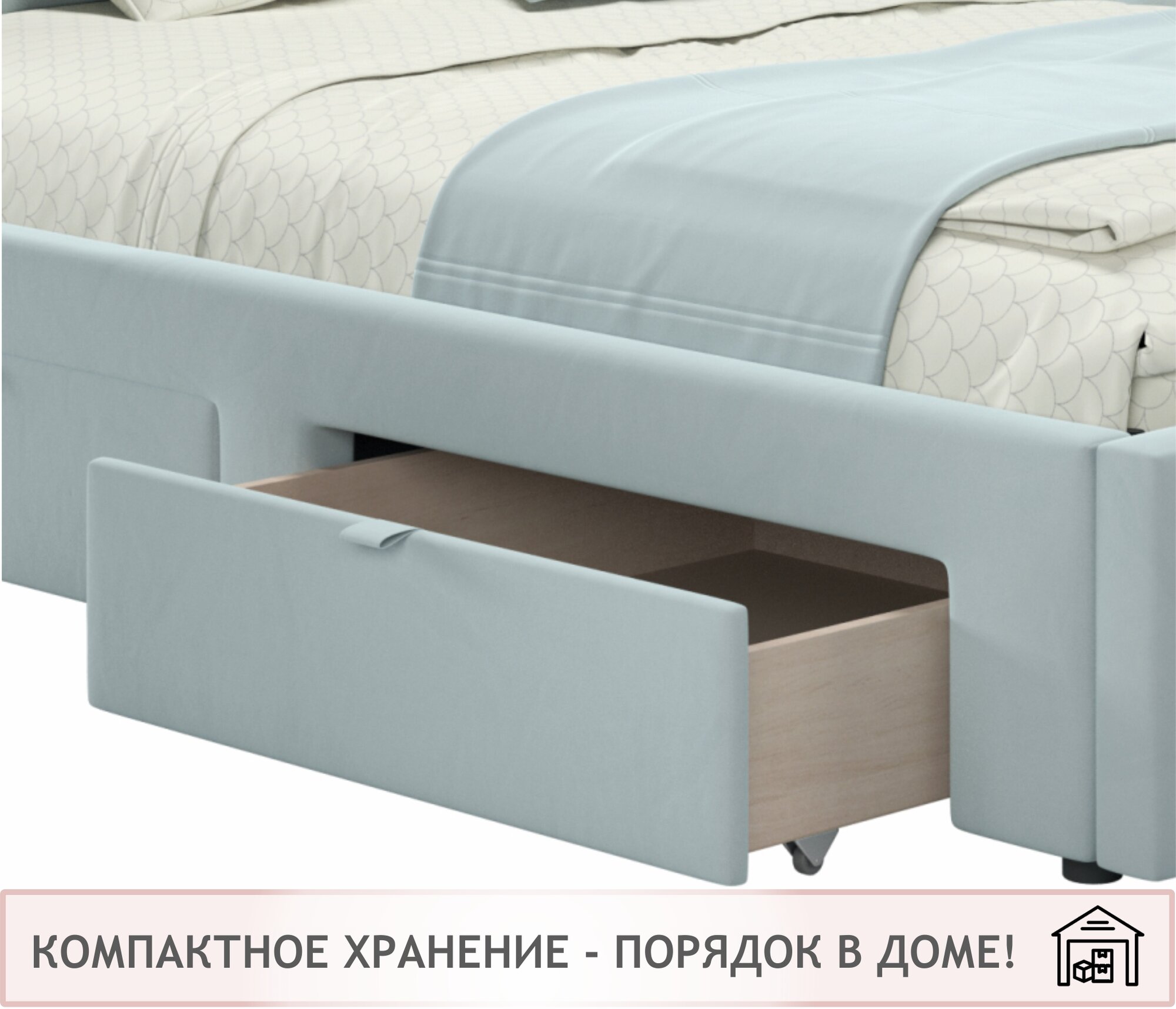 Купить Односпальная кровать-тахта угловая Afelia 900 мята пастель Zeppelin ортопед 90х200, из велюра с ящиками