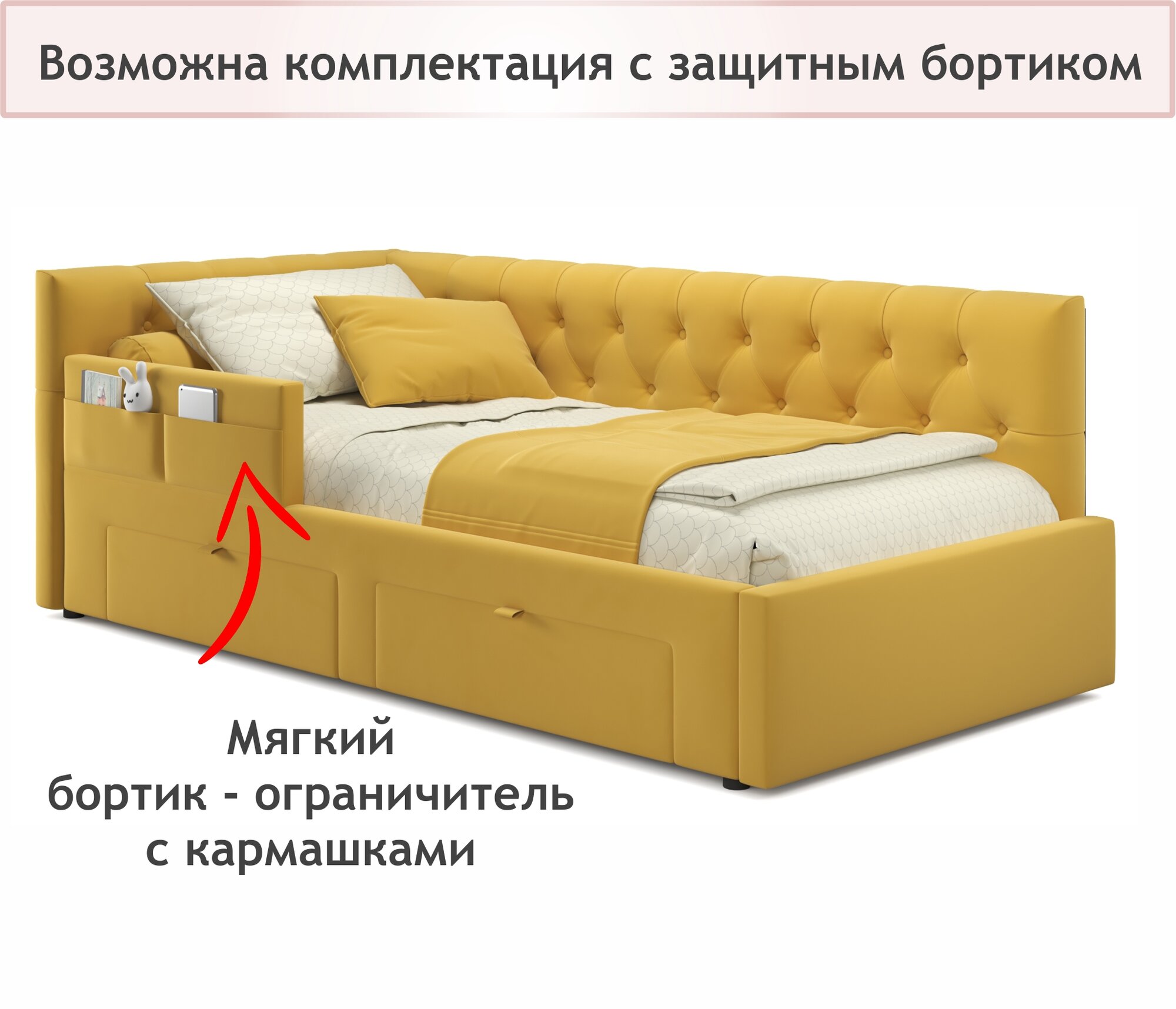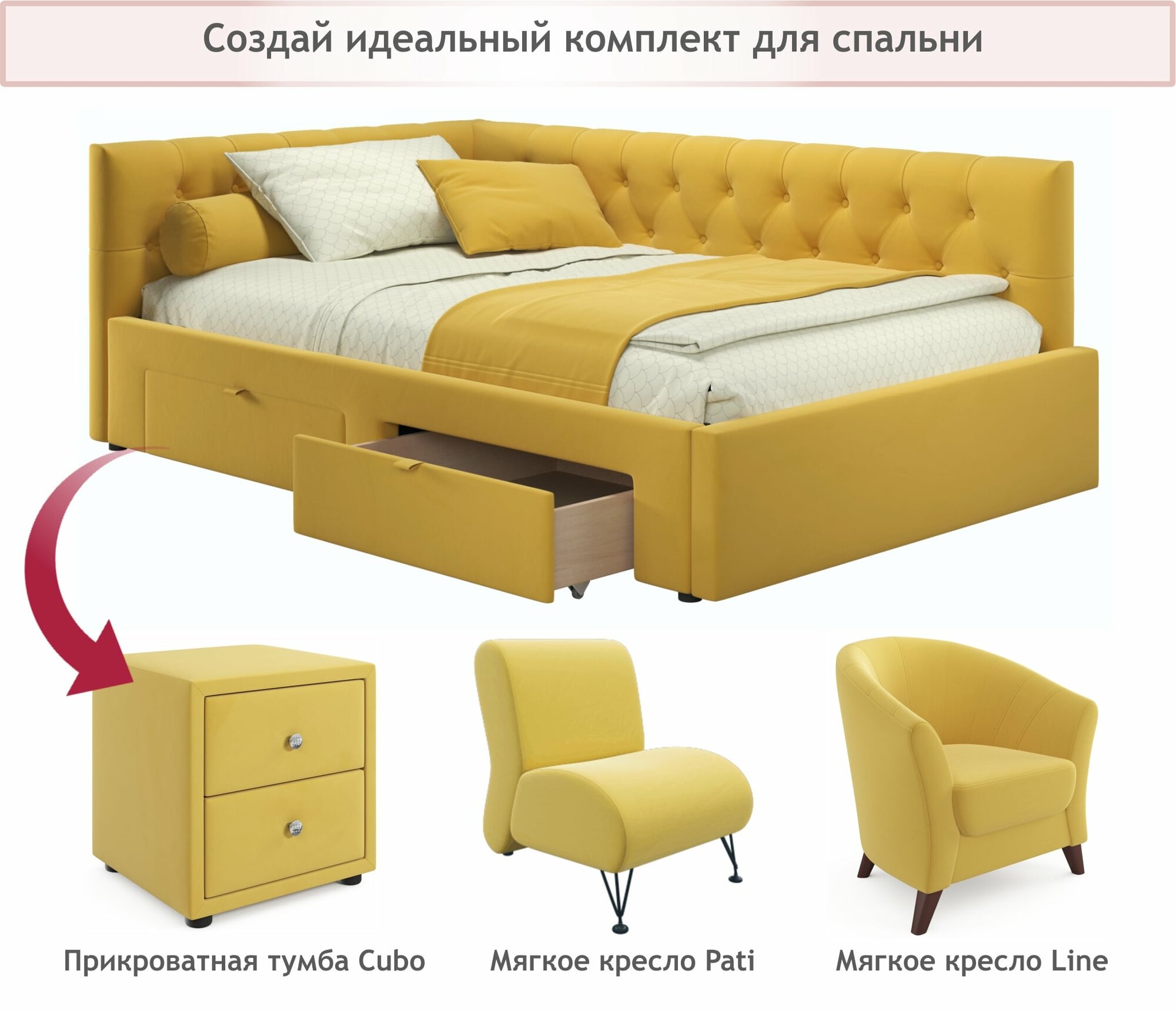 Односпальная кровать-тахта угловая Afelia 900 желтая Zeppelin с ортопедическим основанием , 90х200, мягкая из велюра, с ящиками