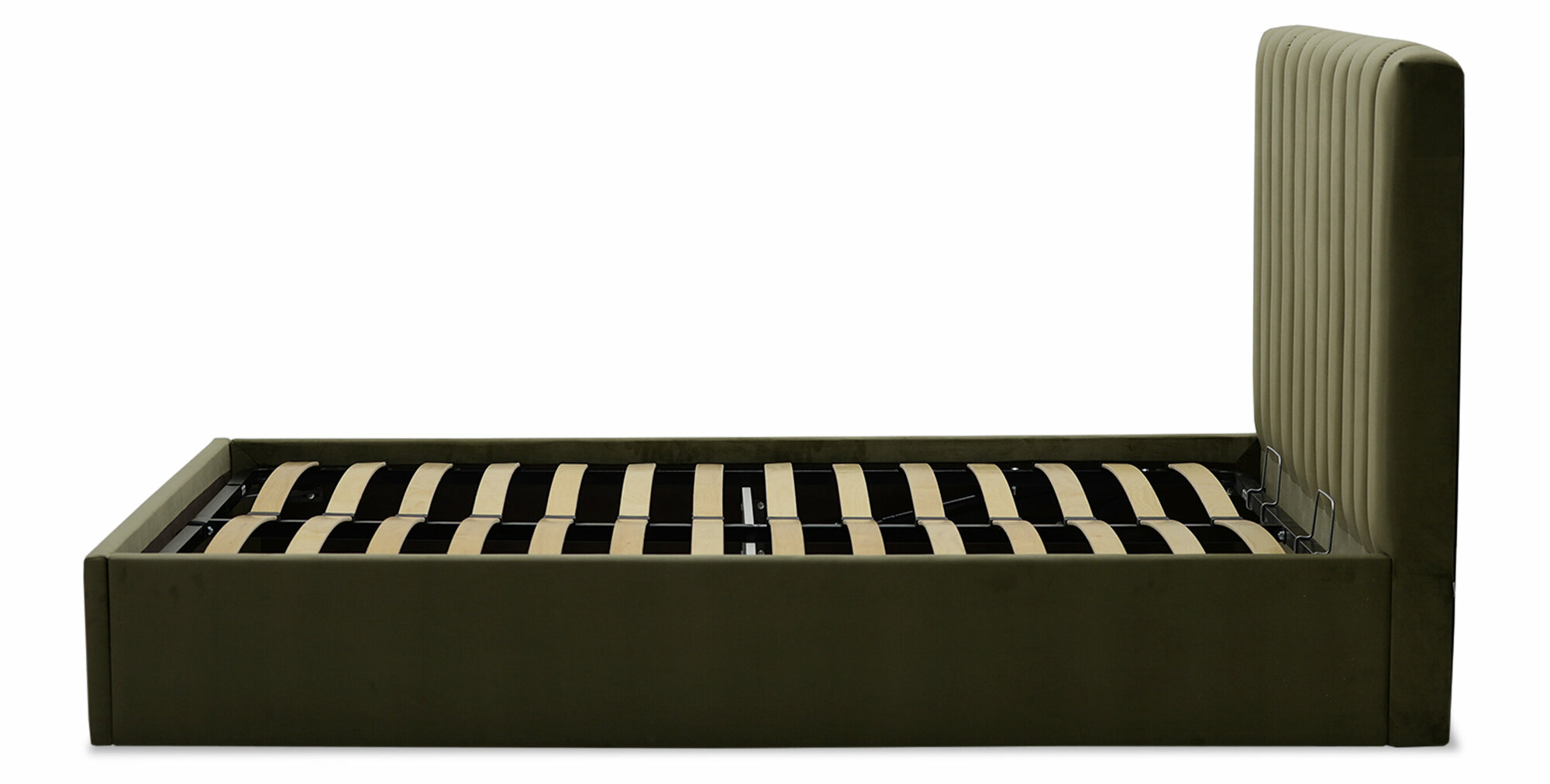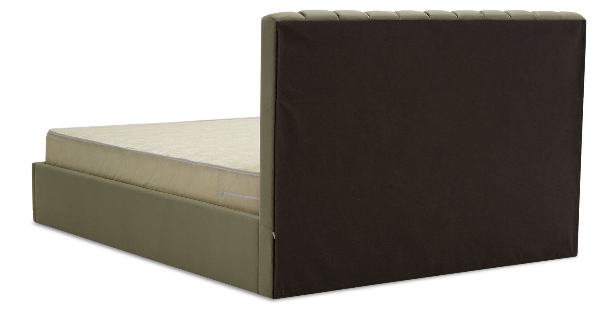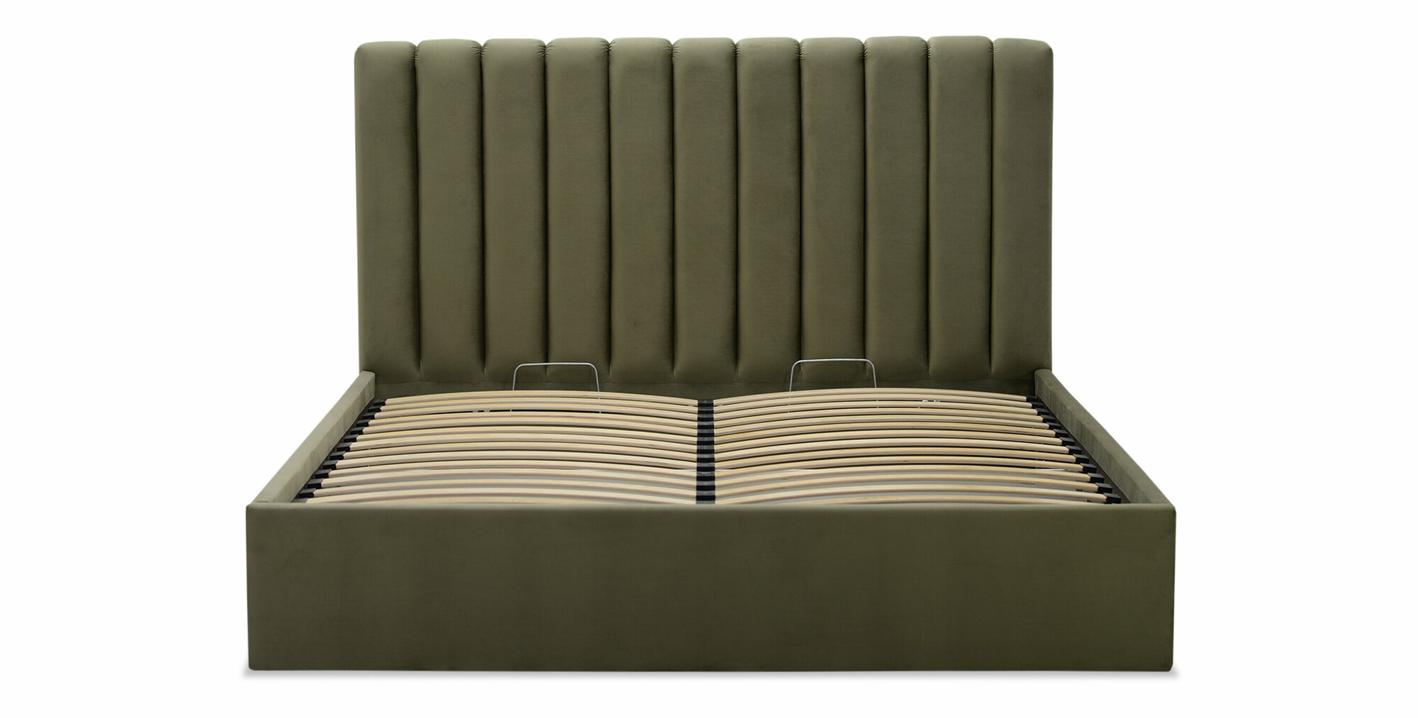 Двуспальная кровать Страйп 160х200 с подъемным механизмом, Ладья, с мягким изголовьем для дома и спальни, ортопедическое основание, ящик для белья, Сonfetti Olive