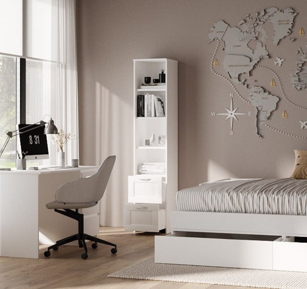 Стеллаж ГУД ЛАКК Сириус, 2 выдвижных ящика, 39х35х190 см, ЛДСП, белый