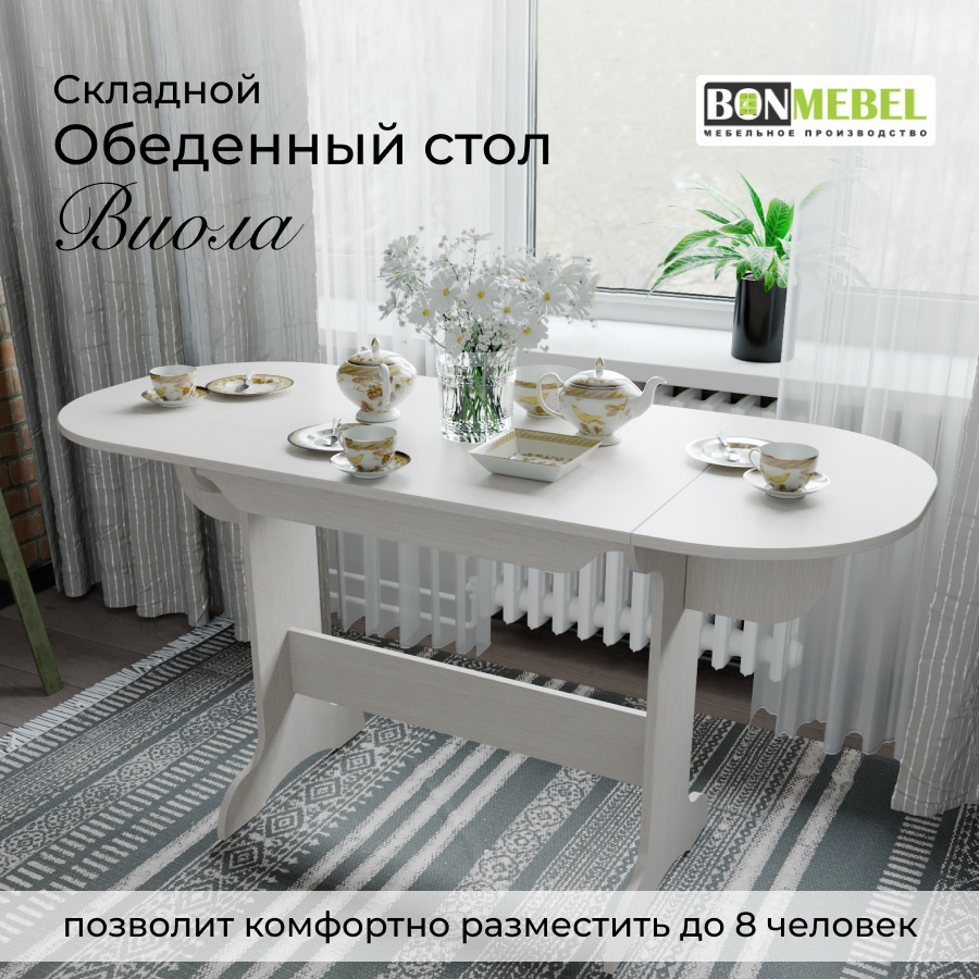 СохранитьСтол кухонный BONMEBEL Виола, ЛДСП Дуб белый, раскладной, обеденный, 80(140)х60х74 см интересное: