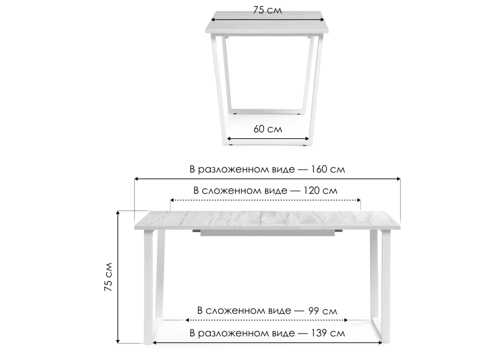 Стол раскладной Лота Лофт 120 25 мм юта / белый матовый 489662