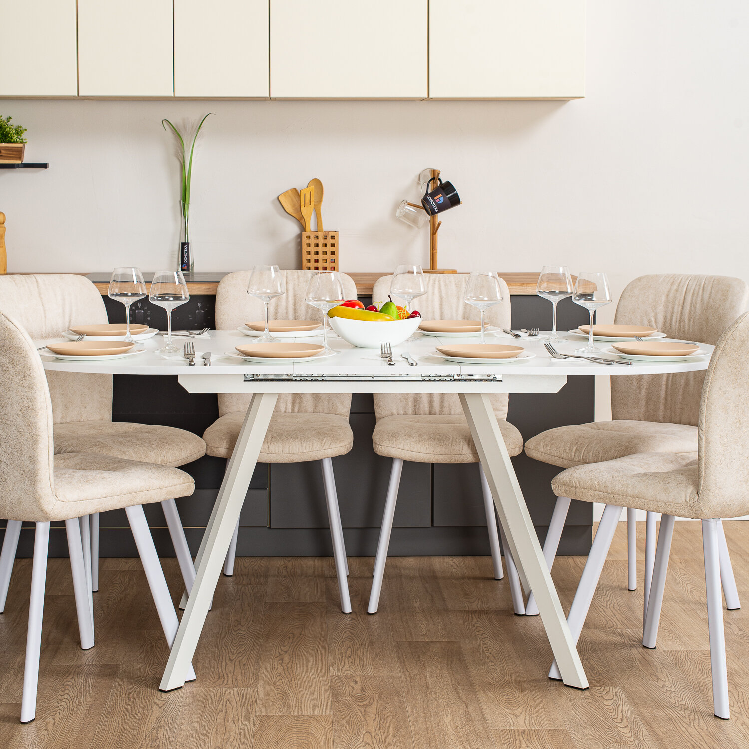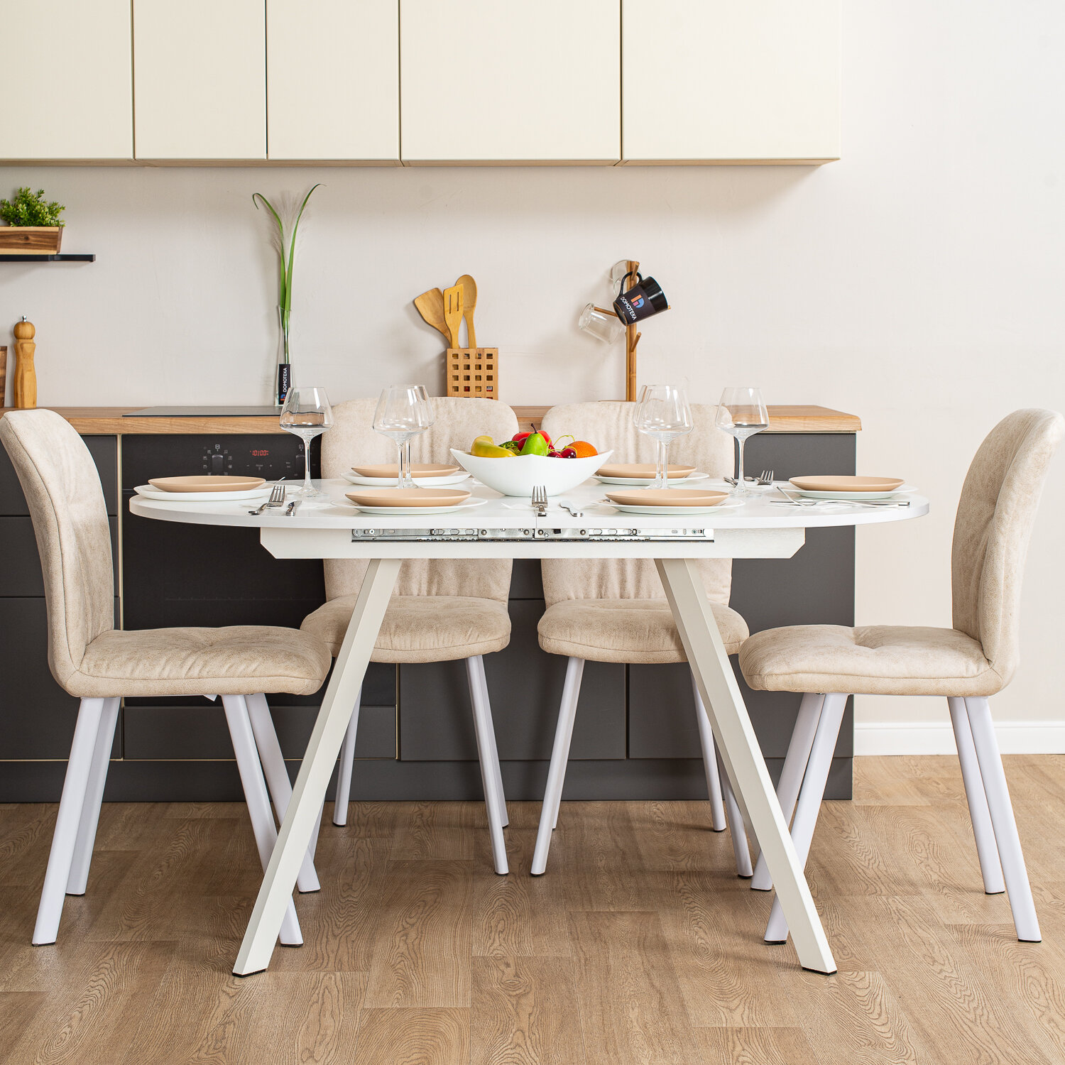 Стол кухонный овальный раздвижной Вальс О-1 ОС 95 ЧР 120х80, раскладной, бежевый