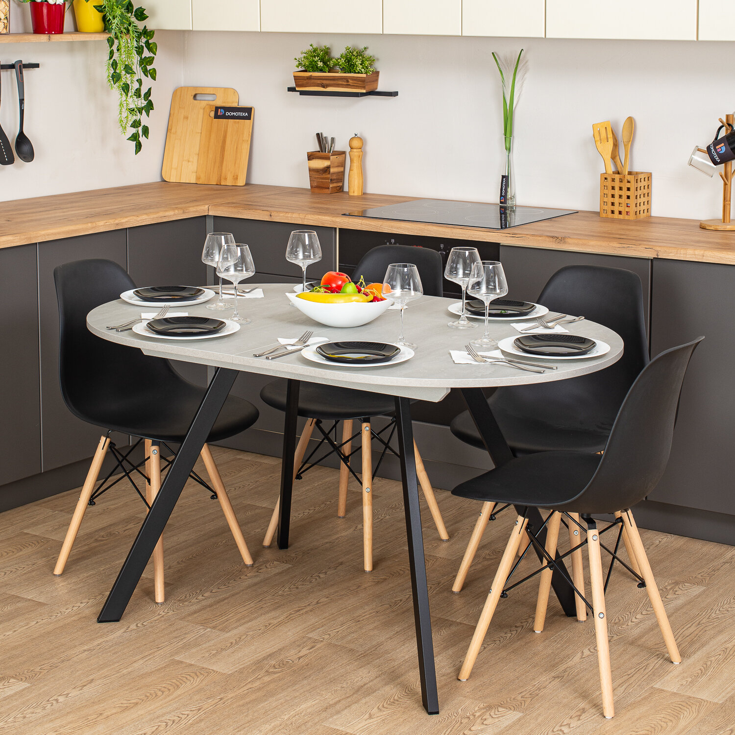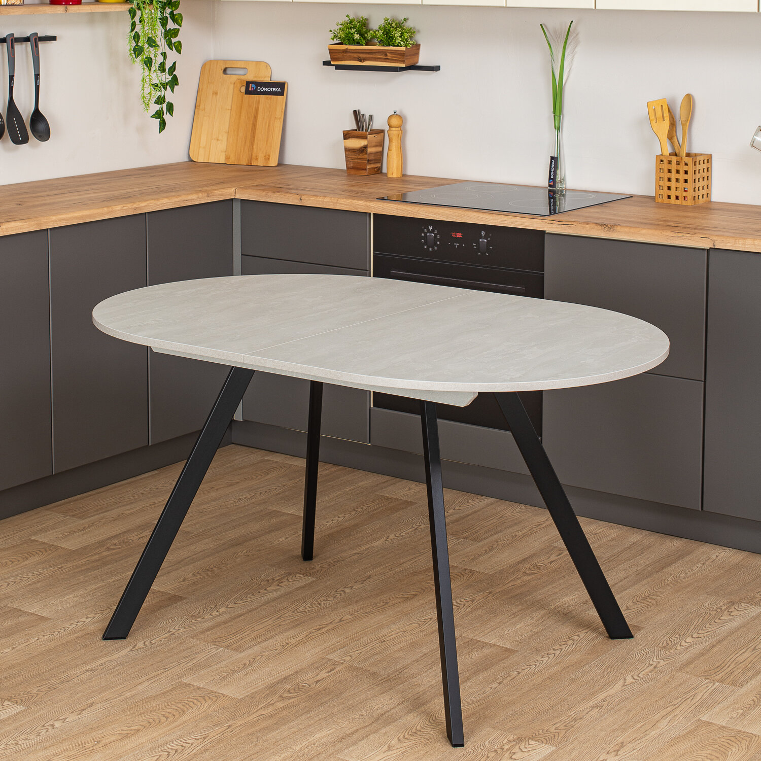 Стол кухонный овальный раздвижной Вальс О-1 СБ 95 ЧР 120х80, раскладной, серый бетон