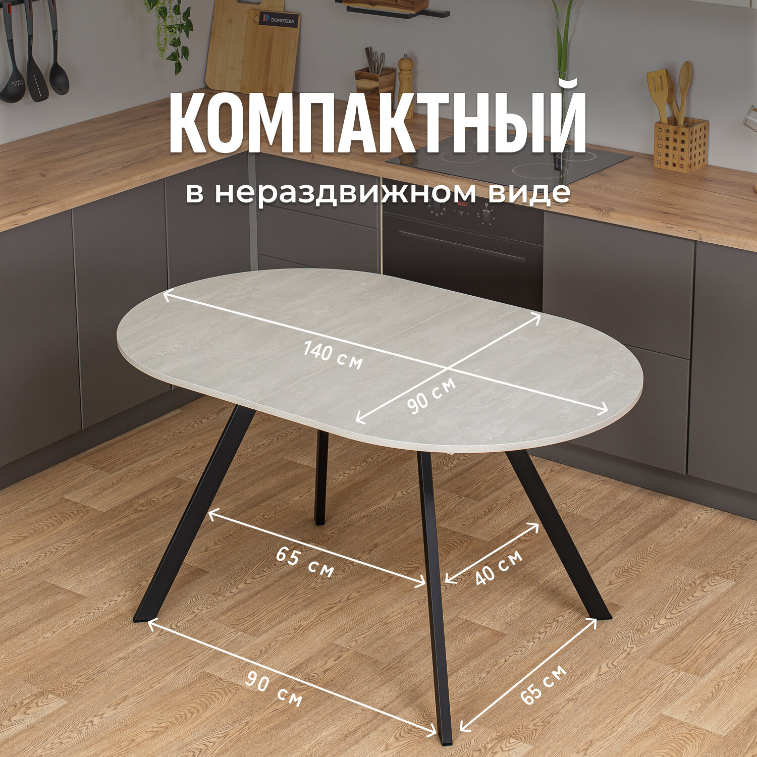 Купить Стол кухонный овальный раздвижной Вальс О-2 СБ 95 ЧР 140х90, раскладной, серый бетон