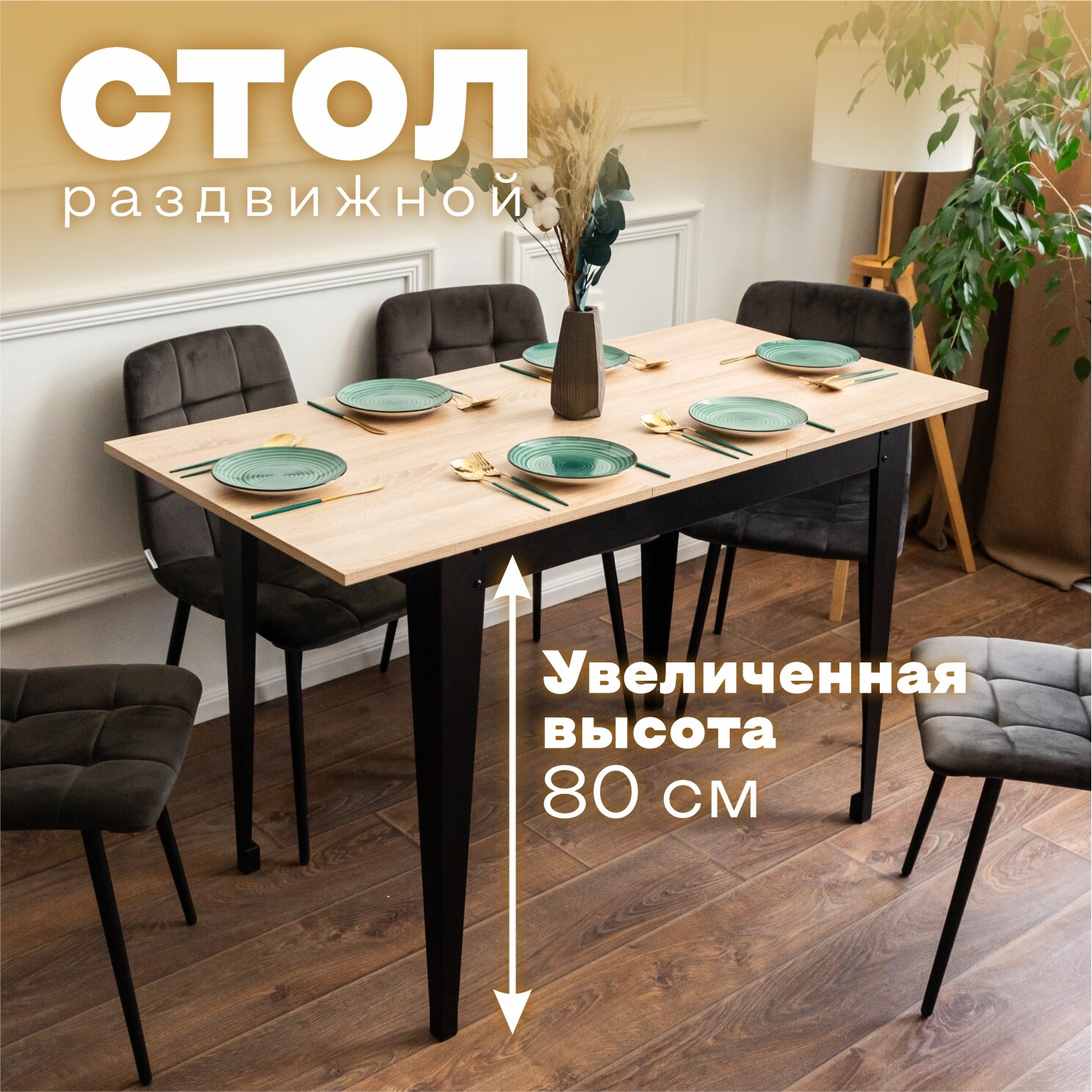 Стол кухонный раздвижной Donini 80 Кейптаун. Стол обеденный раздвижной / раскладной.