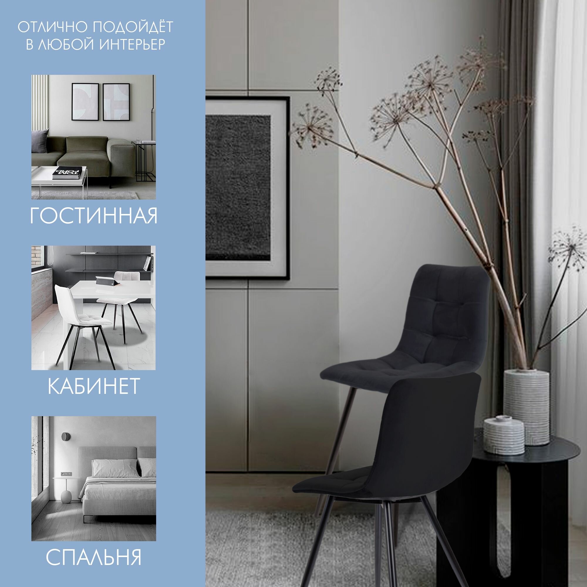 СохранитьСтул для кухни Pixel, мягкий велюр, графит 1шт интересное: