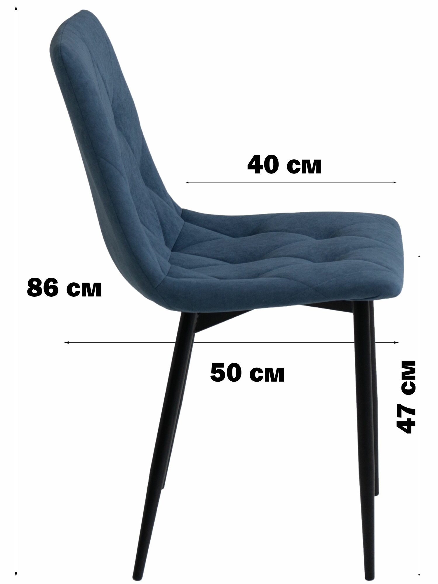 Стул мягкий для кухни, комплект из 4 кухонных стульев чили, велюр, синие, черные ножки