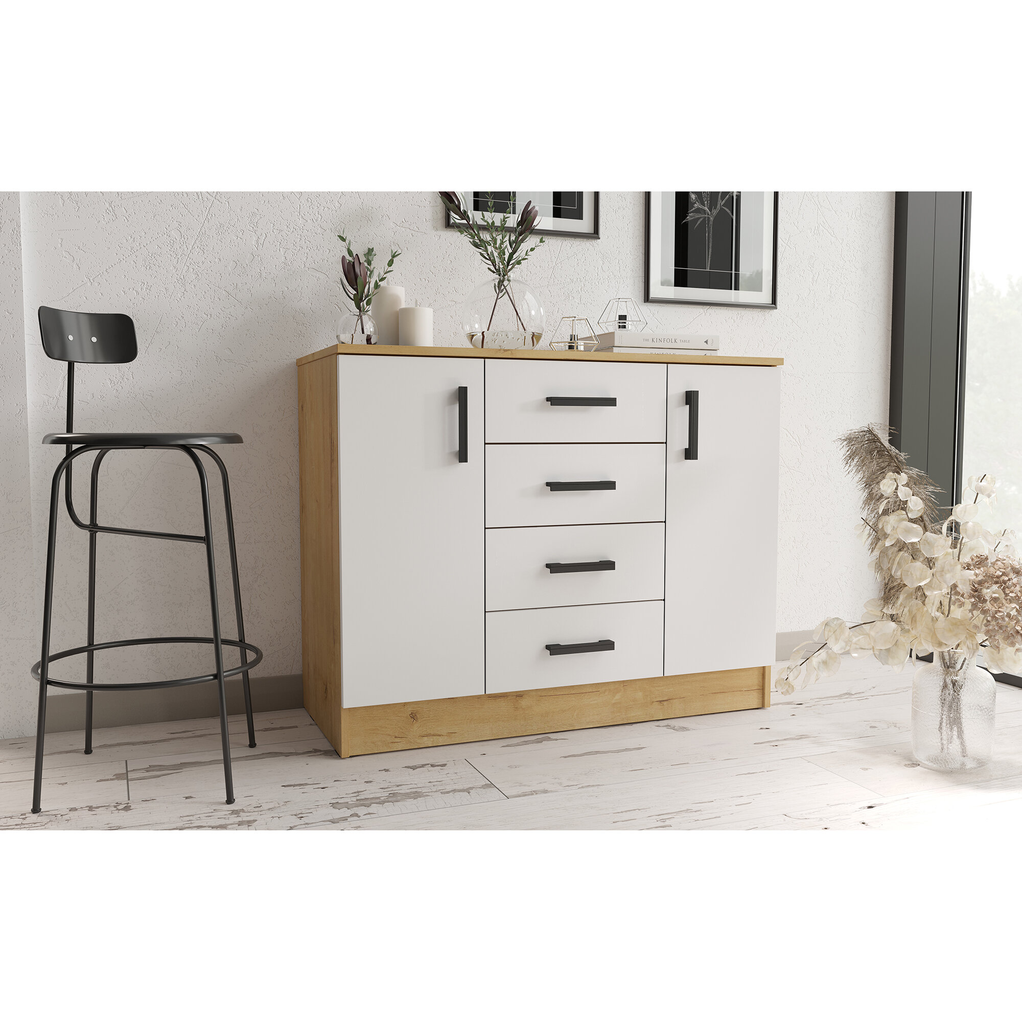 Купить Комод ЭРА К1000-2Д, 4 ящика, 2 дверцы, ЛДСП, 100 х 83 х 44 см, Дуб вотан/Белый гладкий