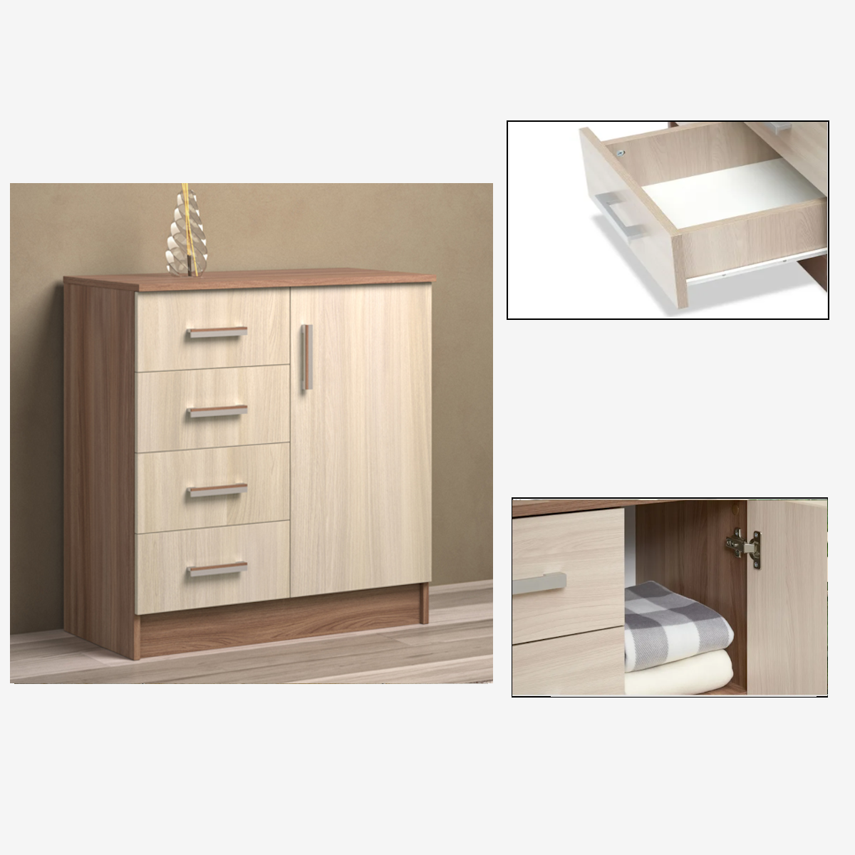 Комод Адель 800-4ящиками Белый гладкий /Дуб Вотан /Цемент темный