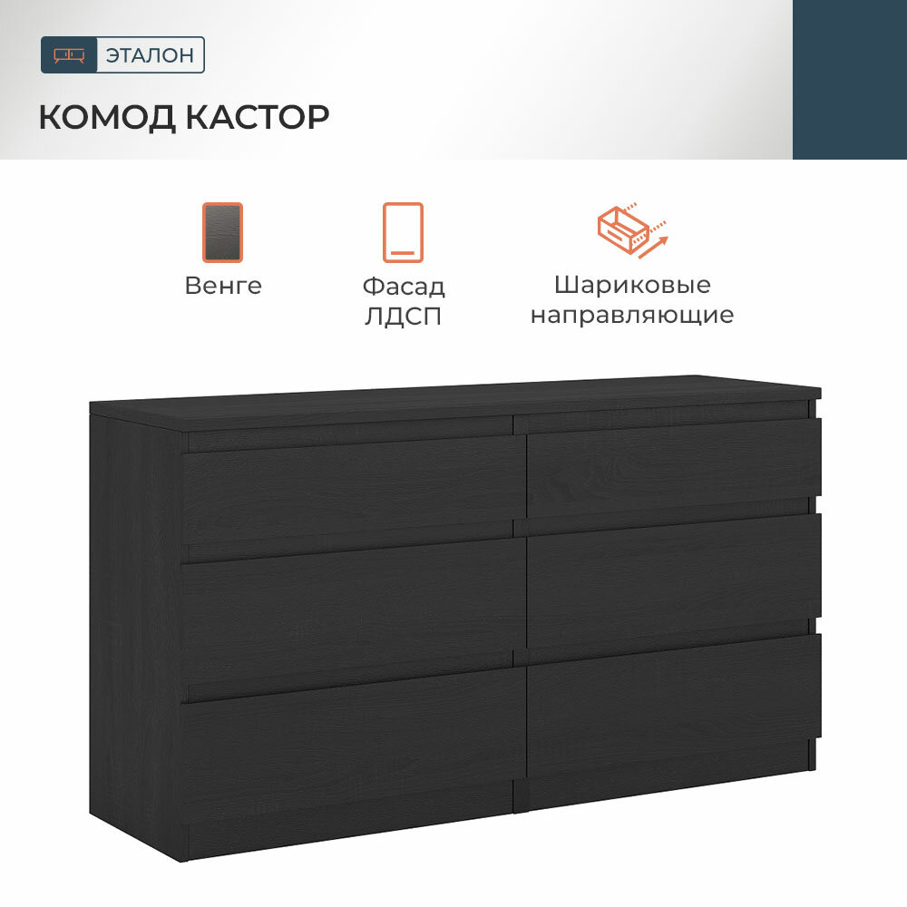 Комод ГУД ЛАКК Кастор, 6 ящиков, 129х39х71 см, черно-коричневый, дуб венге