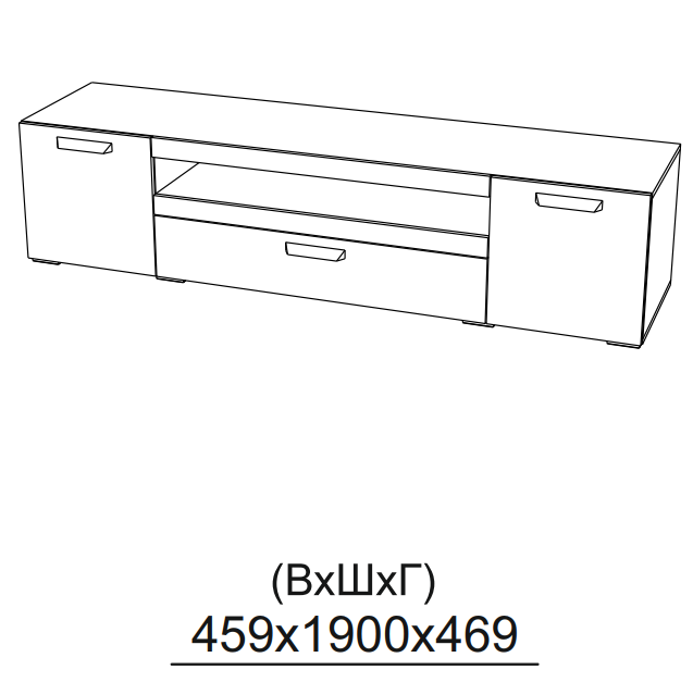 Тумба под телевизор напольная Глория 1900х469х459 мм с ящиком и полками, Белая