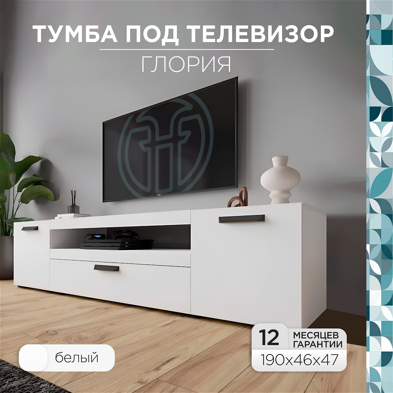 Тумба под телевизор напольная Глория 190х46,9х45,9 см, с ящиком и полками, Белая интересное: