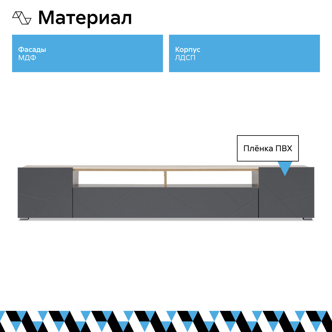 ТВ-тумба Олимп Прага New диамант серый / софт графит 213x35x38.2 см