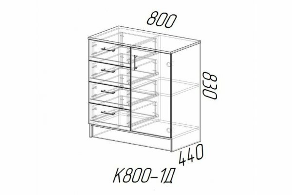 | Комплектация | Комод с 4-мя ящиками. Отсек с дверцей и полкой. |