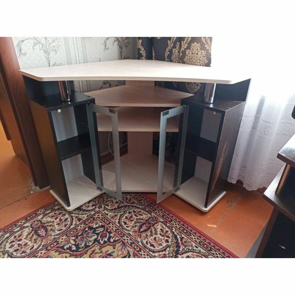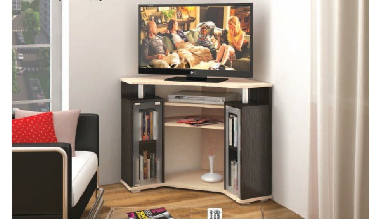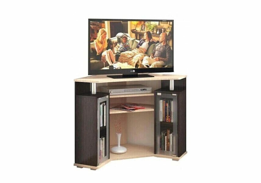 Тумба угловая под телевизор напольная тэкс, ТВ-044 (2У), 80х25х77см, венге/дуб молочный